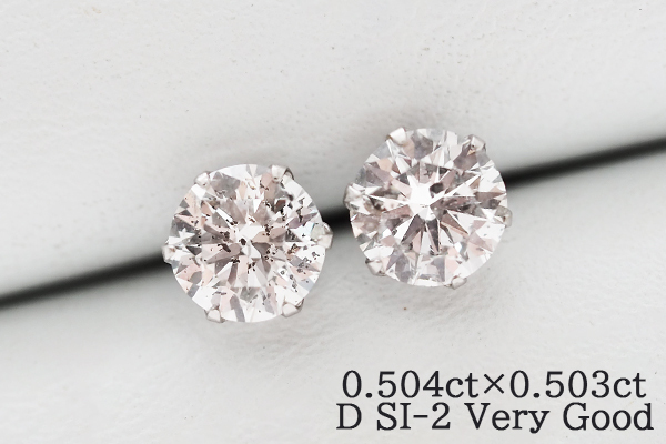 大粒◎Dカラー!鑑定書付◎プラチナ ダイヤモンド各0.504ct&0.503ctピアス スタッドピアス D/SI-2/VG 計1ctUP!Pt00 一粒ダイヤピアス