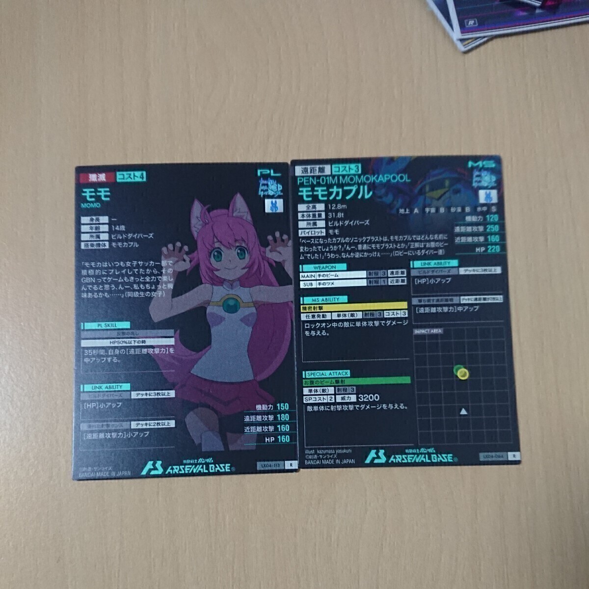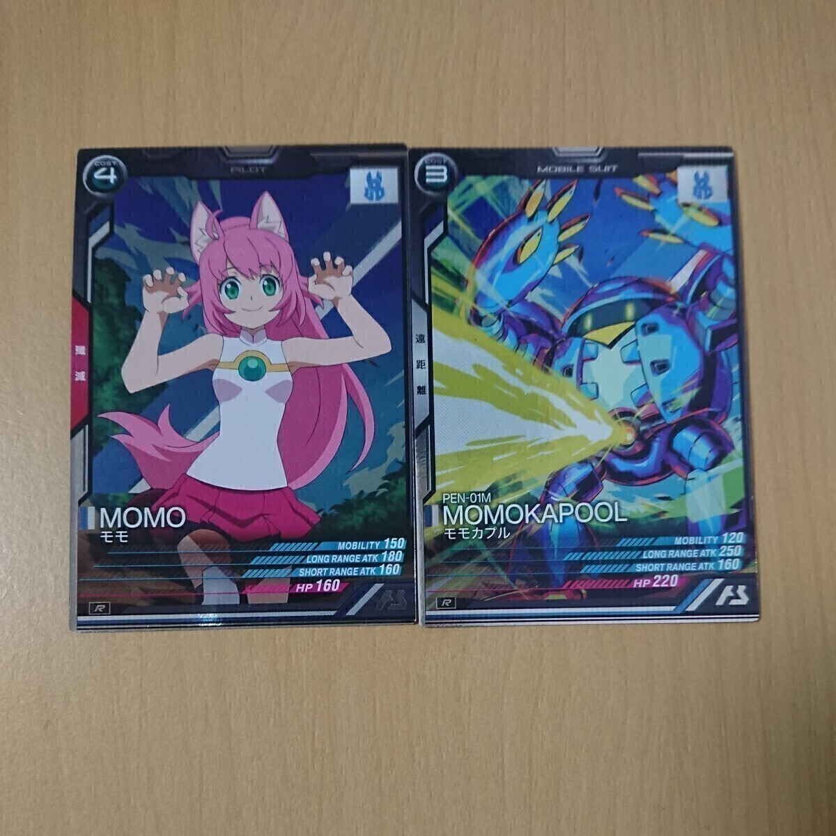 ガンダムアーセナルベース、レア、モモ & モモカプルの出品となります。未使用品です。排出後、スリーブに入れて保管していますが初期キズなど気になさる方はご遠慮ください。配送料金は梱包代込みで全国一律、120円とさせていただきます。他の出品との同梱は対応いたします。ノークレム、ノーリターンにてお願いいたします。