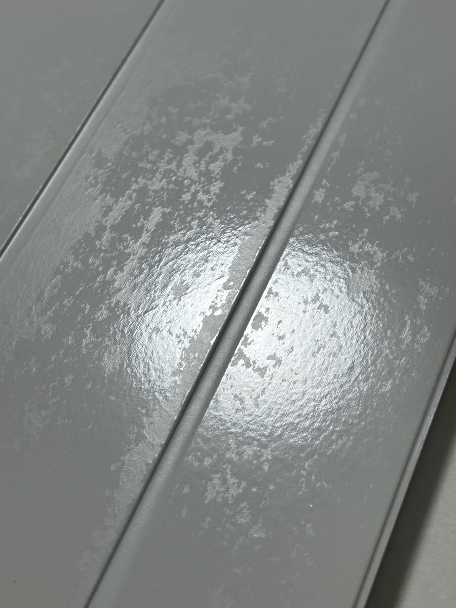 そのため、ケース表面に写真6枚目のような跡が見られます。また、外箱には在庫管理の際にできた軽微なスレが見られる場合や、箱にダメージがあるもの、在庫管理用バーコードシールが残っている場合があります。