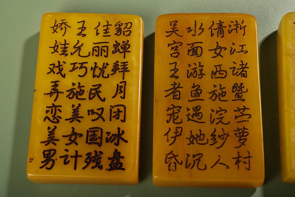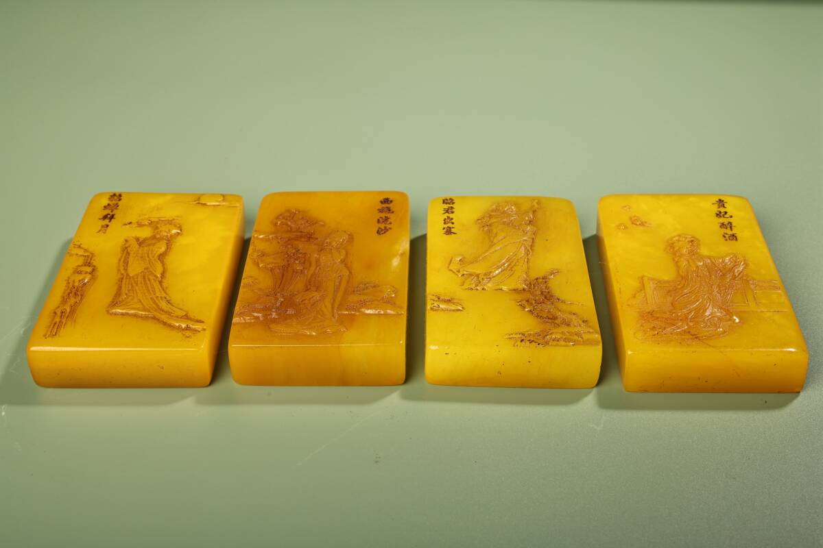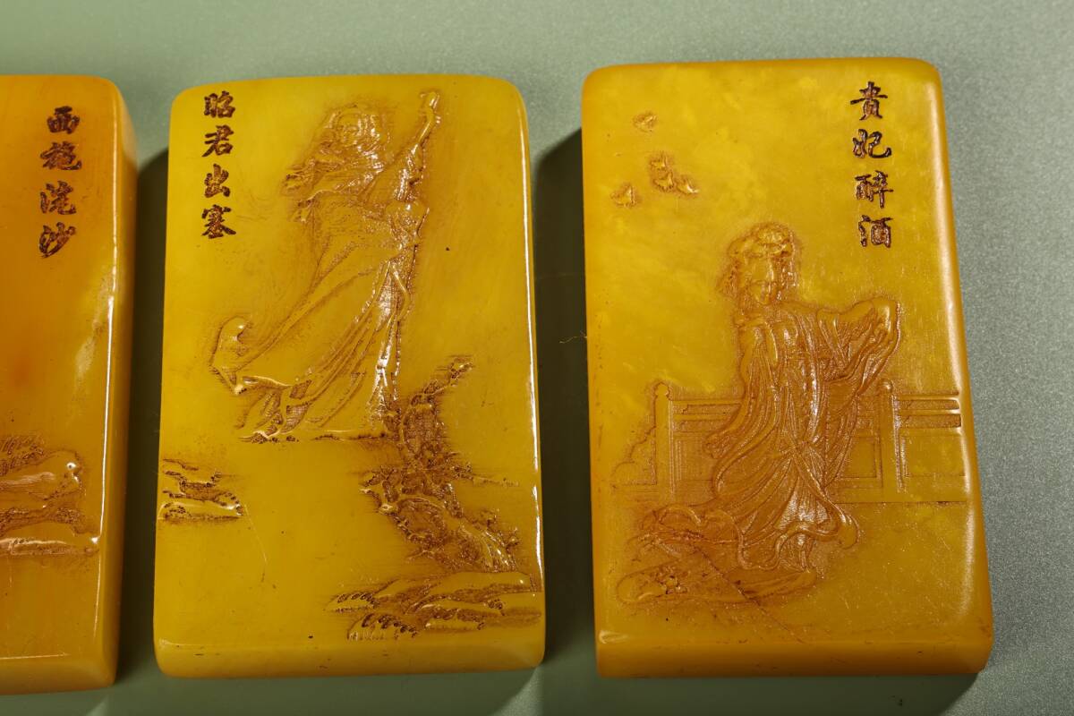 *珍品旧蔵* 清 寿山石 田黄料 彫刻 四大美女 牌子一套 極細工 中国古玩 骨董品 古美味 H48
