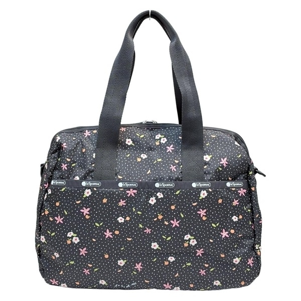 レスポートサック LESPORTSAC ボストンバッグ - 黒×白×マルチ ドット柄/花柄/本体ロックなし バッグ