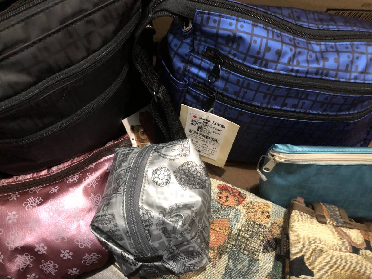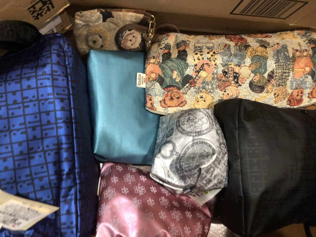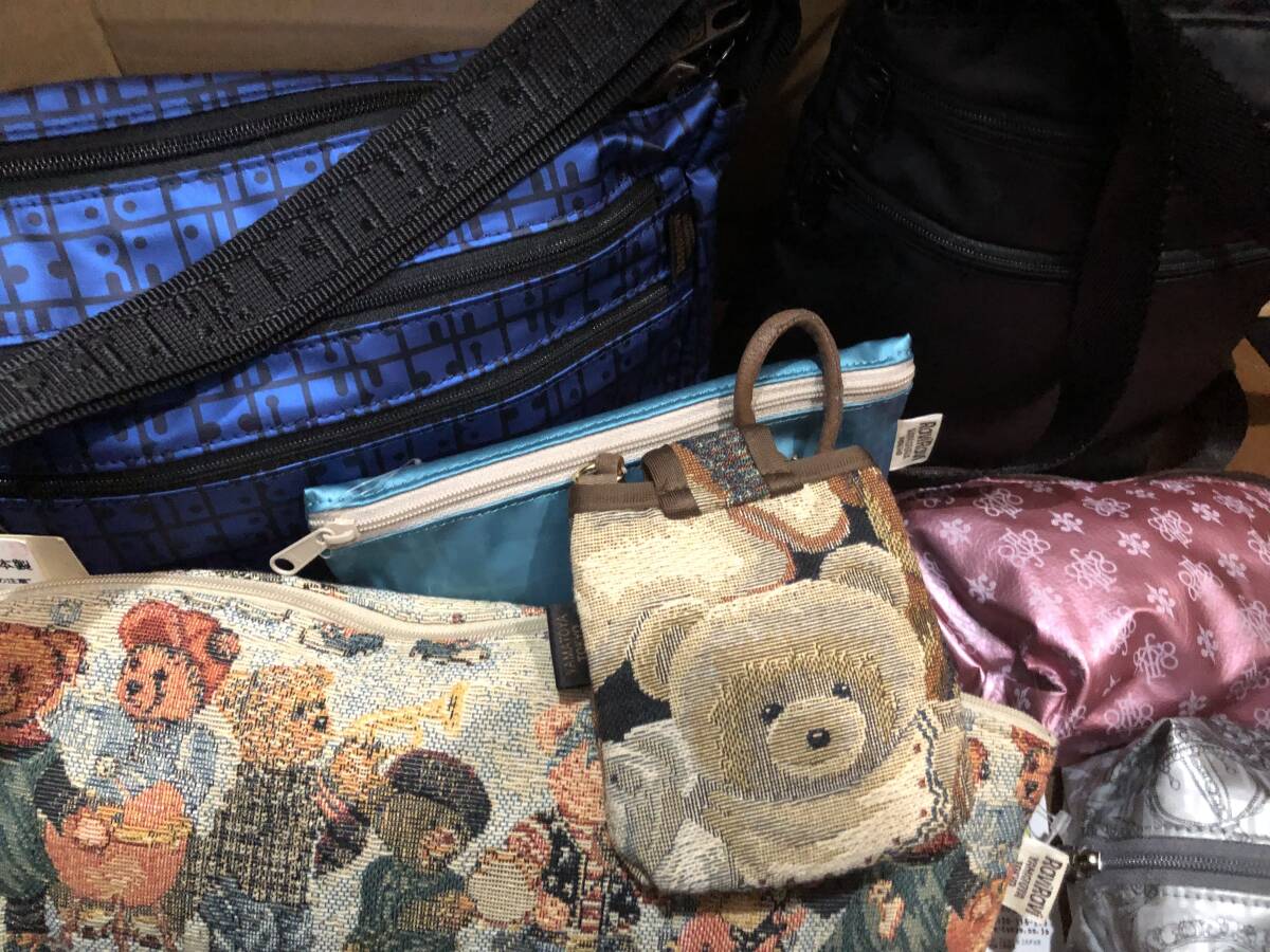 廃盤貴重濃ネイビー色ショルダーバック1点、ブラック3段ファスナー型ミニショルダーバッグ1点、ポーチ5種類(限定貴重希少ブルー系テディベア柄ゴブラン風大きめポーチ1点、テディベア柄被せ式ミニポーチ1点、希少グレー色テディベア柄サイコロ型ミニポーチ1点、限定パールピンク色ミニポーチ1点、限定ブルー色ミニポーチ1点)の全部で7点になります。