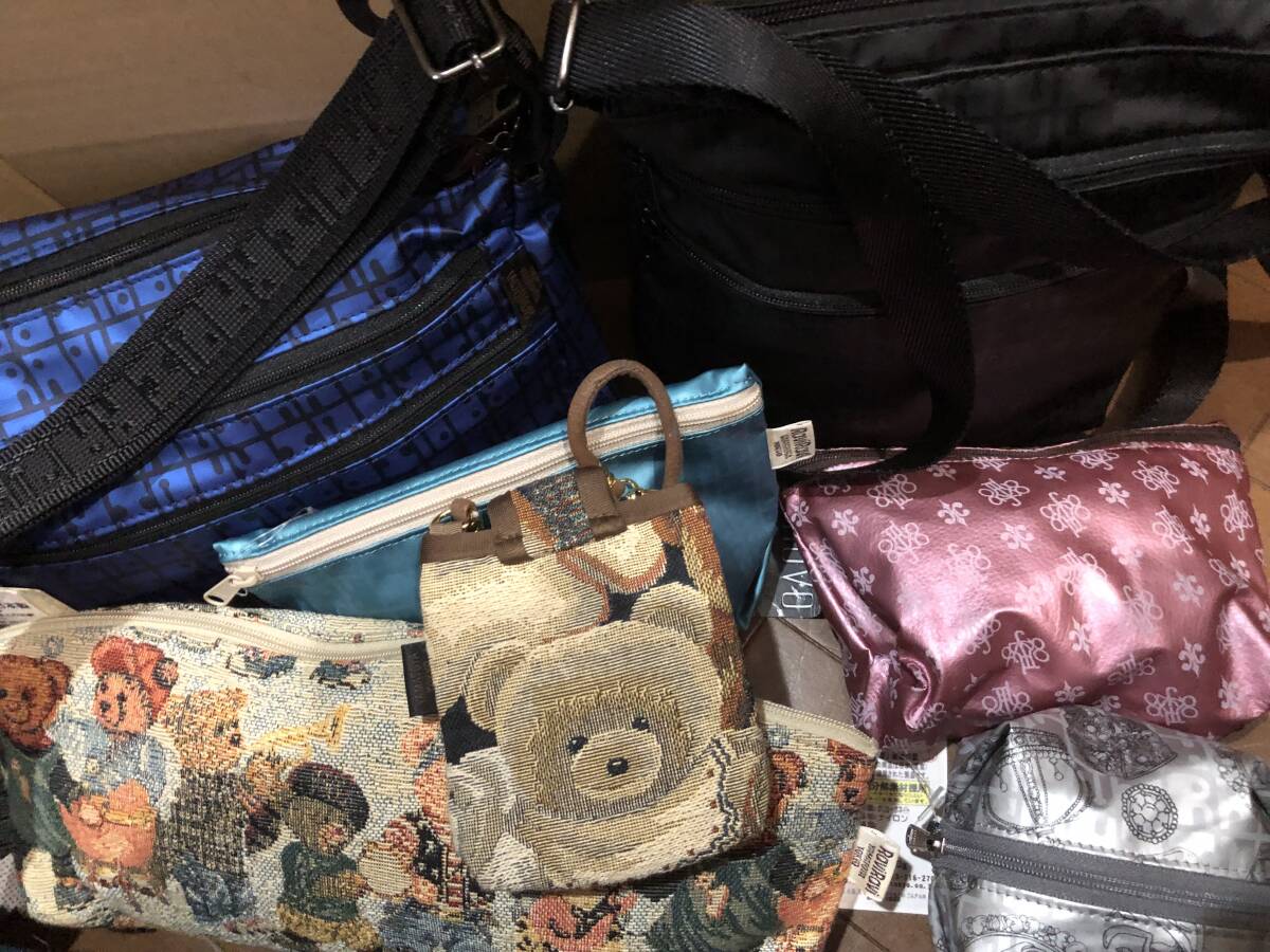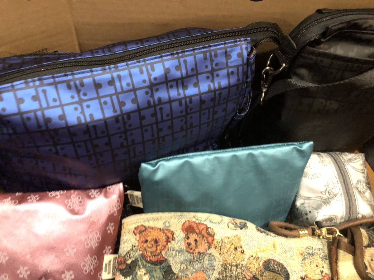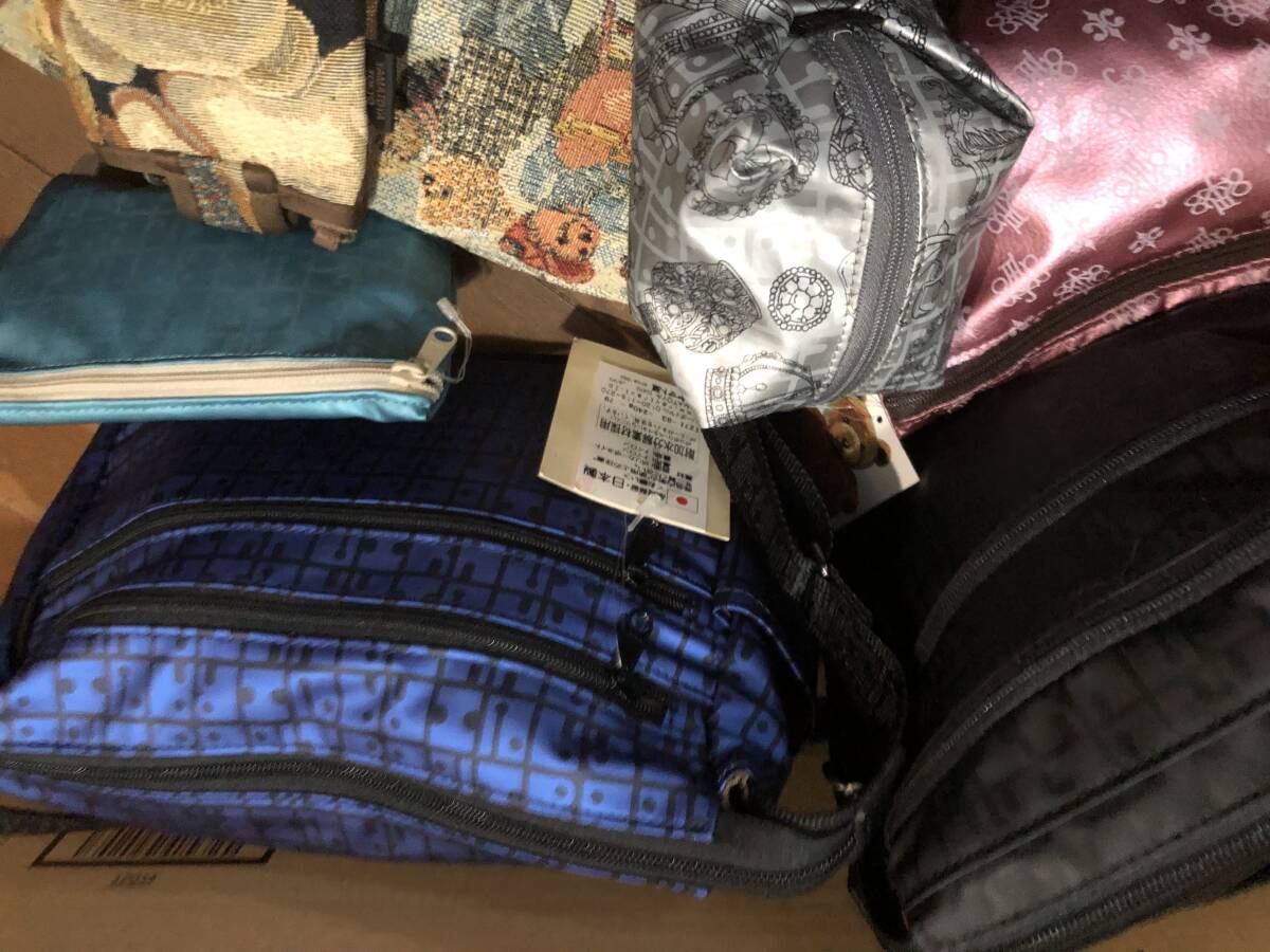 廃盤貴重濃ネイビー色ショルダーバック1点、ブラック3段ファスナー型ミニショルダーバッグ1点、ポーチ5種類(限定貴重希少ブルー系テディベア柄ゴブラン風大きめポーチ1点、テディベア柄被せ式ミニポーチ1点、希少グレー色テディベア柄サイコロ型ミニポーチ1点、限定パールピンク色ミニポーチ1点、限定ブルー色ミニポーチ1点)の全部で7点になります。