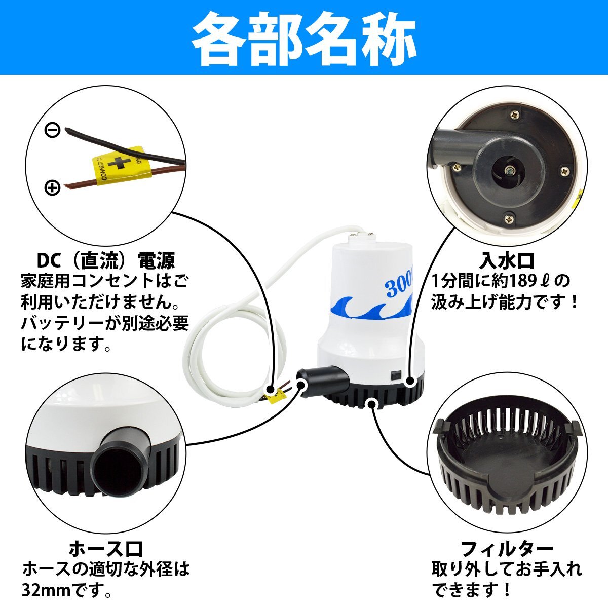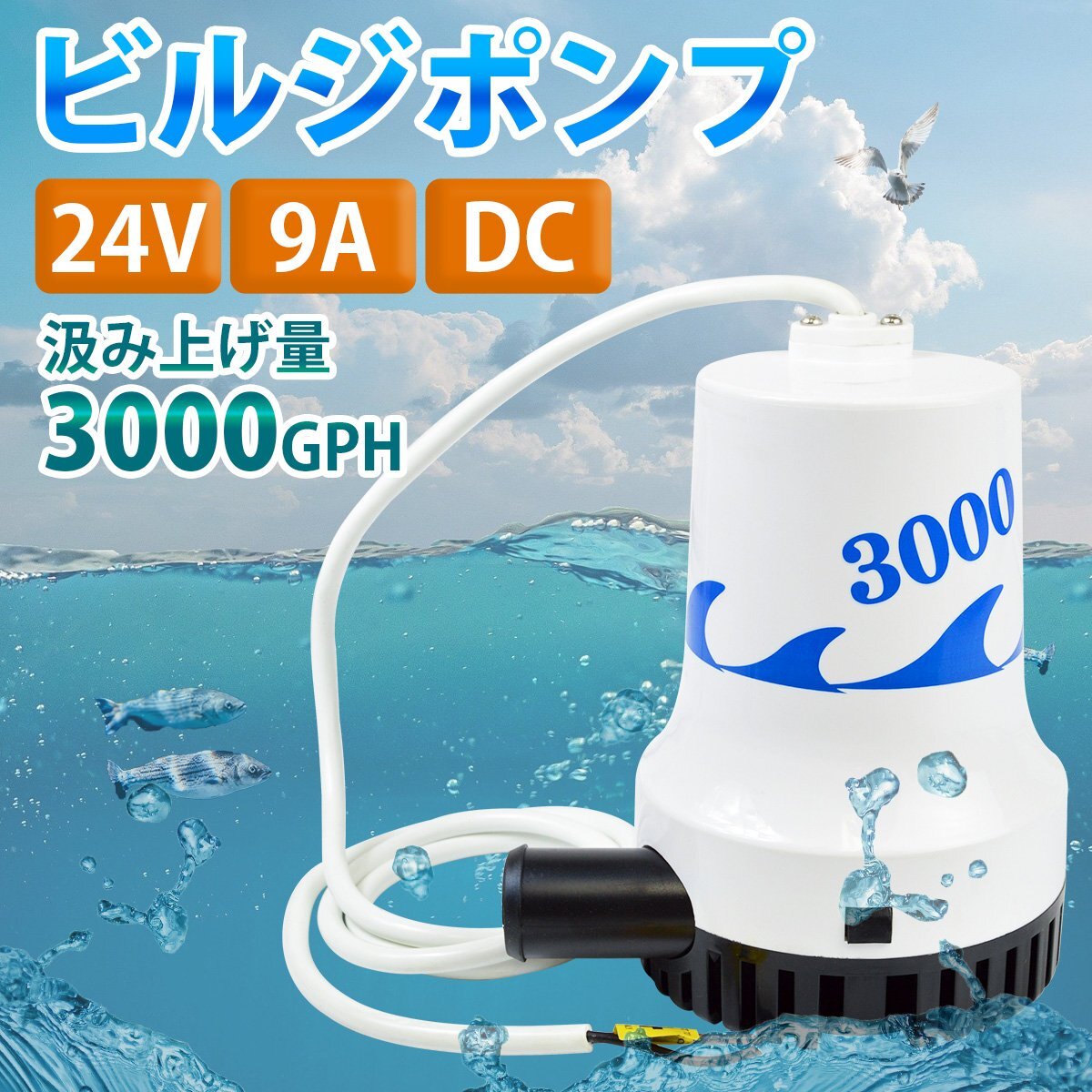 24V ビルジポンプ 3000GPH 海水 対応 毎分189L 水中ポンプ 船 ボート ヨット 船舶 雨水 浸水 排水 排水 汲み上げ ポンプ