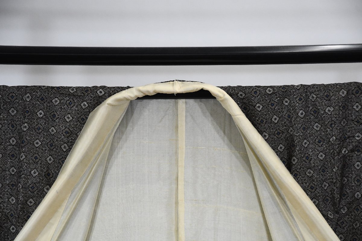 サイズ | ▼身丈 (背中から) 146cm ▼裄丈 63cm ▼袖丈 46.5cm ▼後巾 28.5cm ▼前巾 22cm |