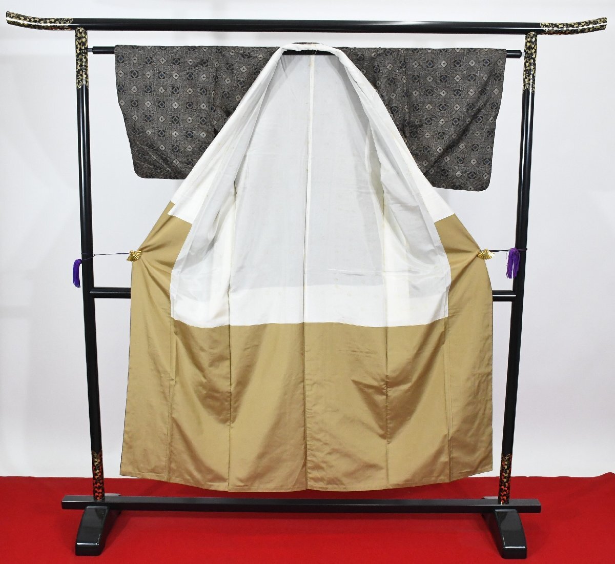 コメント | 衽、前身頃、後ろ、袖、衿、前側、裏地等にシミ汚れがあります。新品ではありませんので、中古品という扱いです。少したたみジワがある場合がございます。ご了承の上、ご入札をよろしくお願いいたします。 |