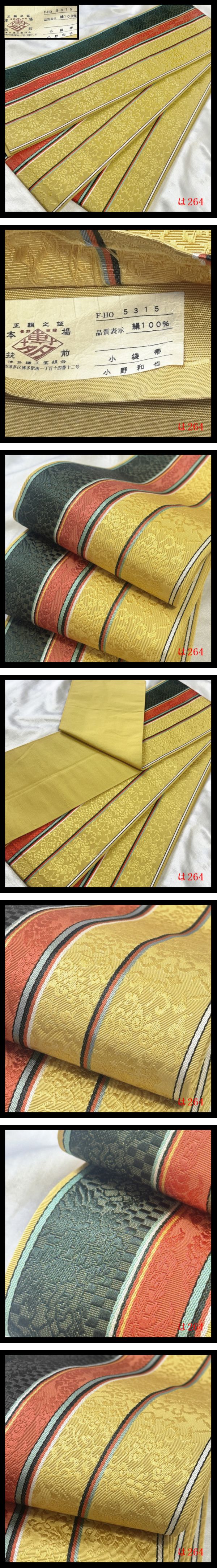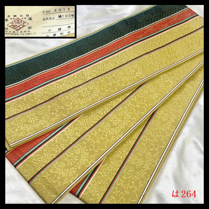 【は264】厳選逸品 半幅帯 本場筑前博多織 小野和也 小袋帯浴衣帯 唐草花紋 芥子色地 正絹 ◇検着物簪袋帯名古屋帯和装小物帯締め
