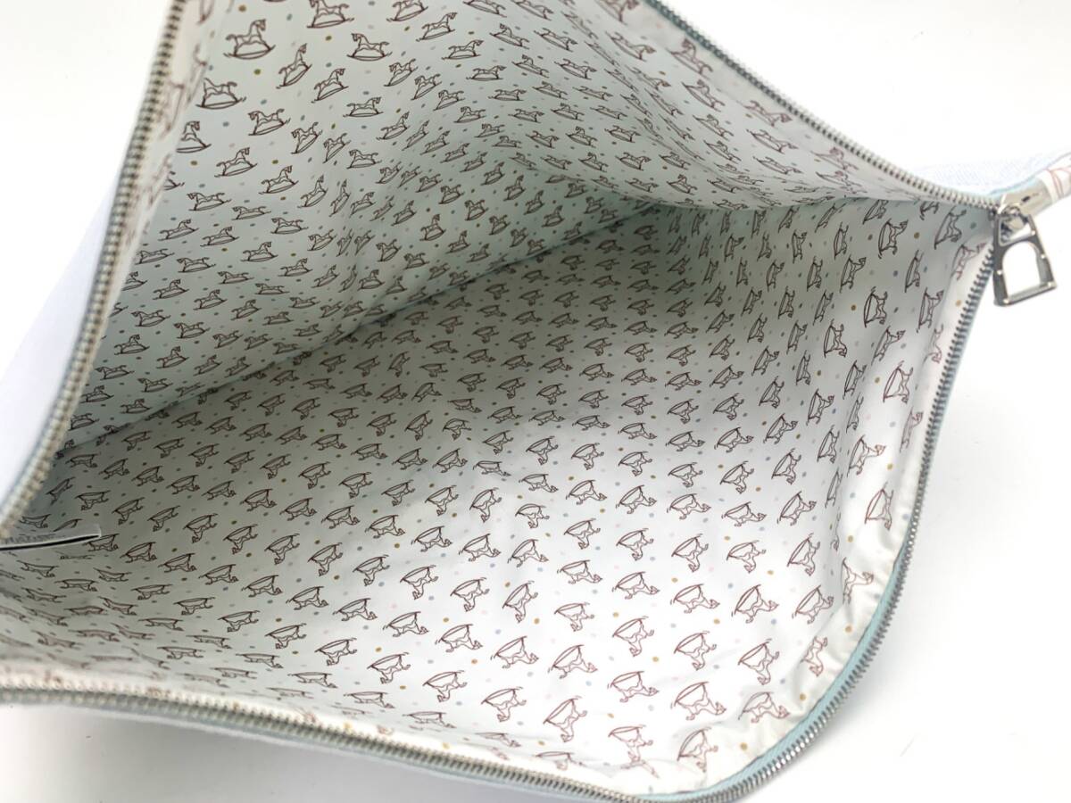 | エルメスより、フラットポーチになります。ベビーギフトにもおすすめな一品です。木馬デザインが可愛いです。Aランク。保存による畳みシワはございますが、大きな問題のない綺麗なお品です。 | |