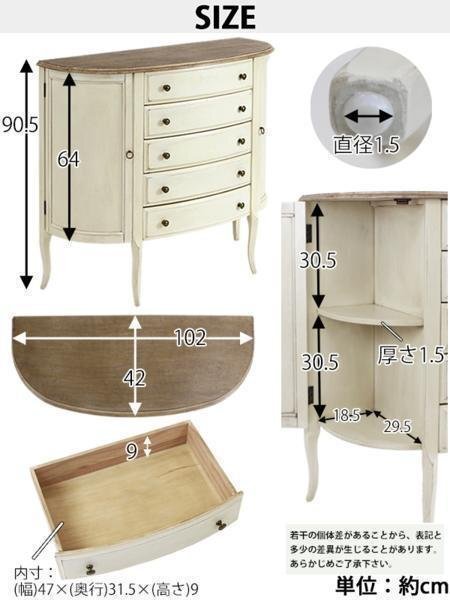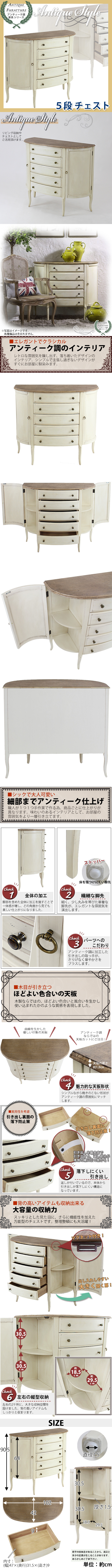 | 商品名 | アンティーク調 5段 チェスト W約102×D約42×H約90.5cm ホワイト 引出し 引き出し アンティーク家具 木製 アンティーク風 アンティーク インテリア 家具 五段 キャビネ キャビネット 収納 棚 タンス 箪笥 リビング シャビーシック シャビー 白 antiqueh762wh |
