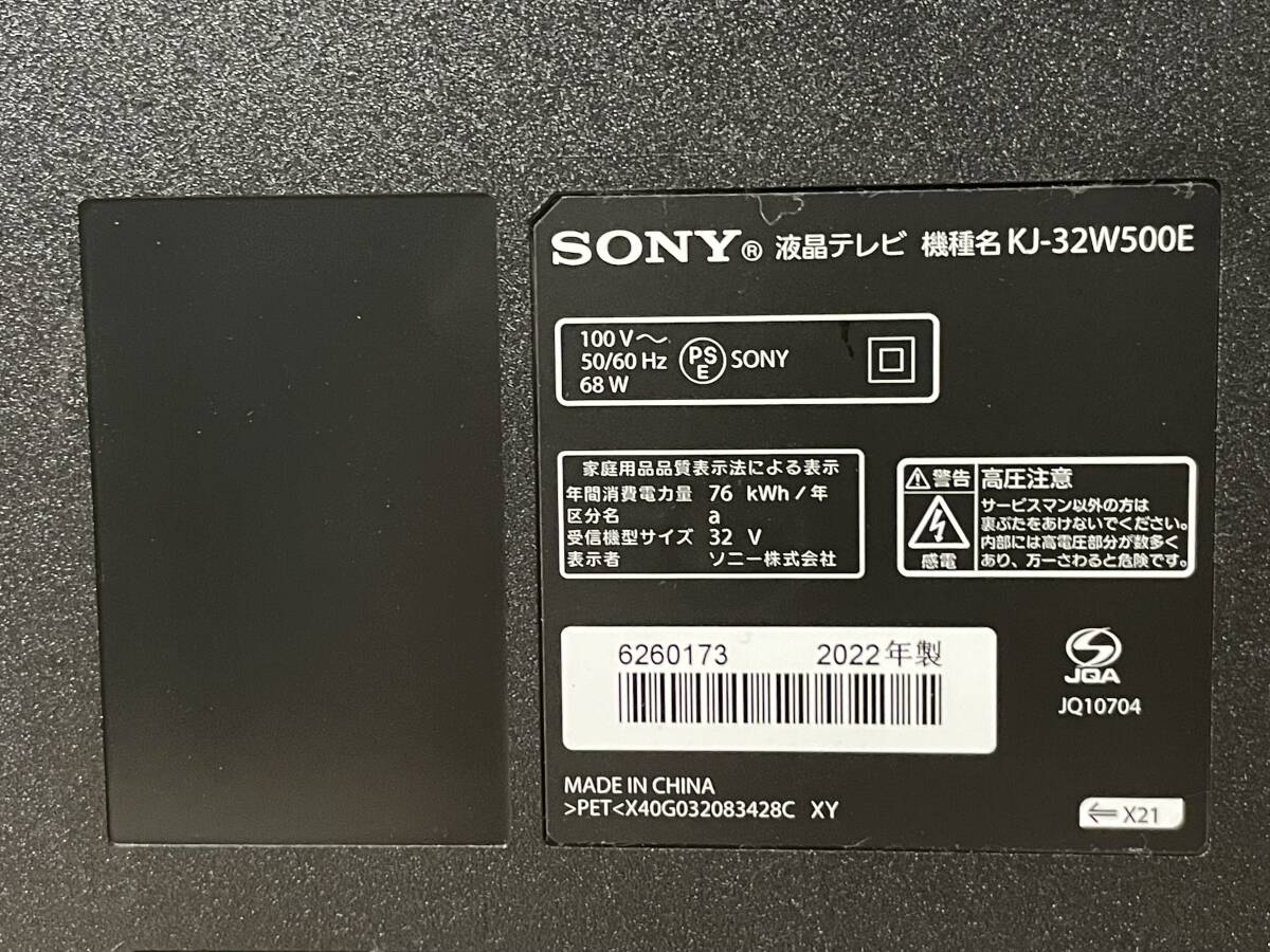 YB315 動作確認済 SONY ソニー BRAVIA 32型ハイビジョン液晶テレビ KJ-32W500E 22年製 本体のみ