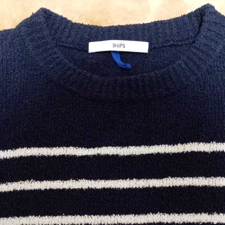 商品名 : 細ボーダーデザインMIXコットンパイルセーター
