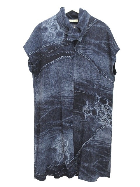 シセンドウ 詩仙堂 HITOSHI TAMURA ちりめん 縮緬 デニムプリント チュニック ブラウス シャツ インディゴ系 ワンピース レディース