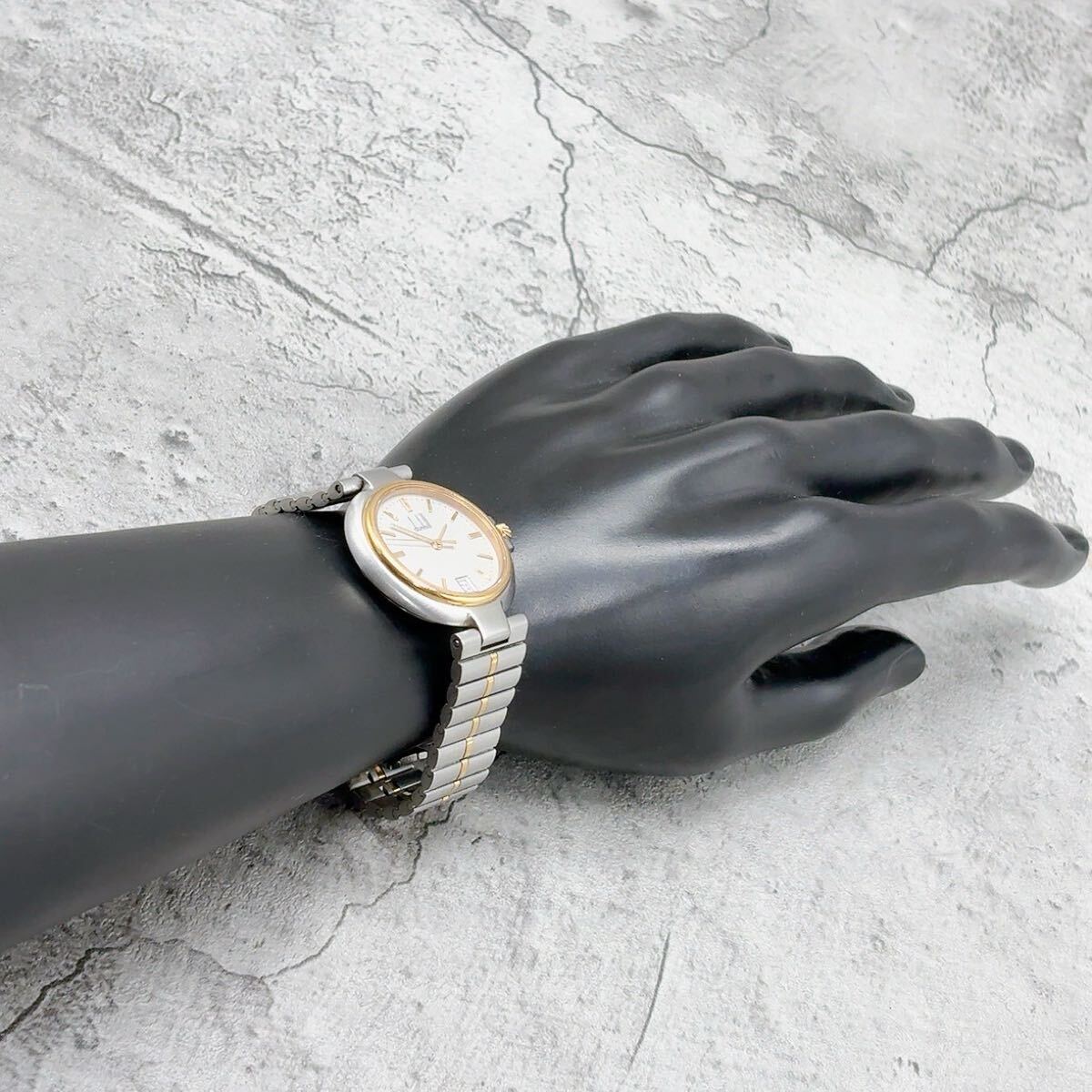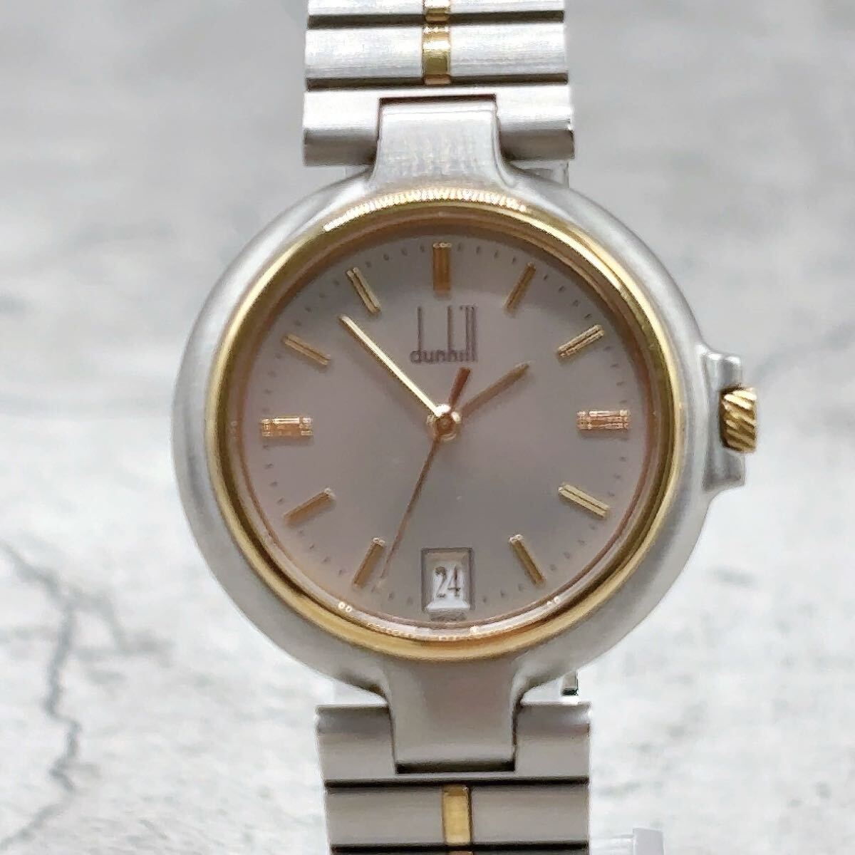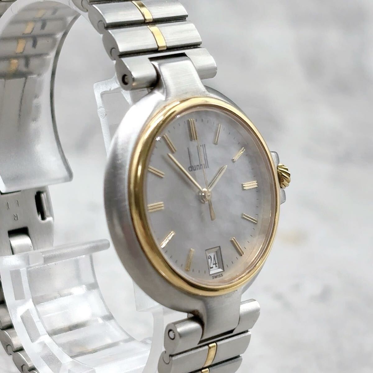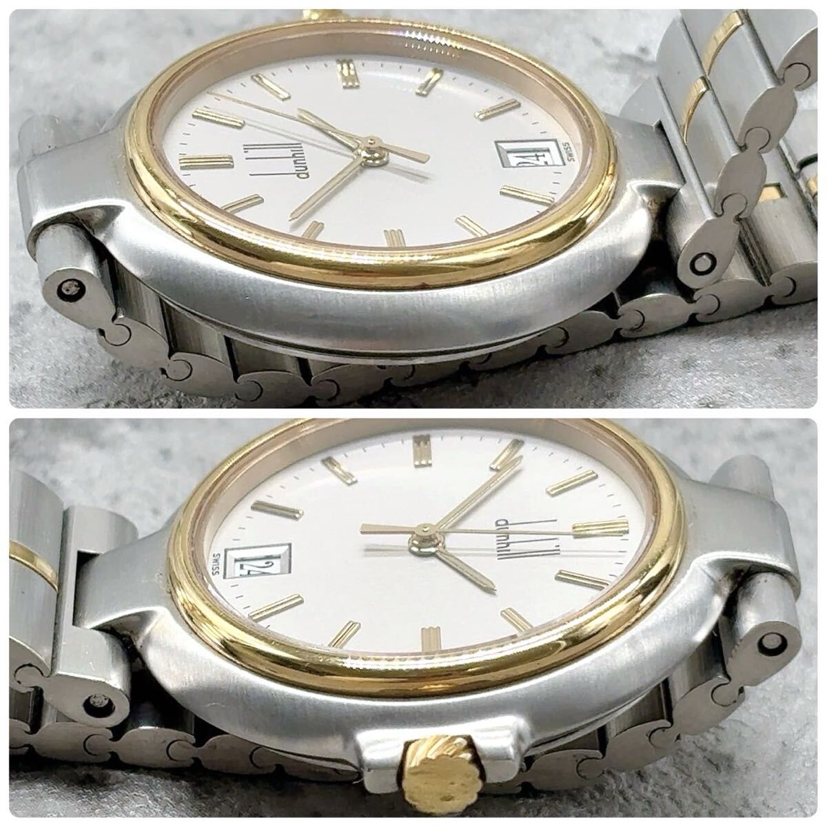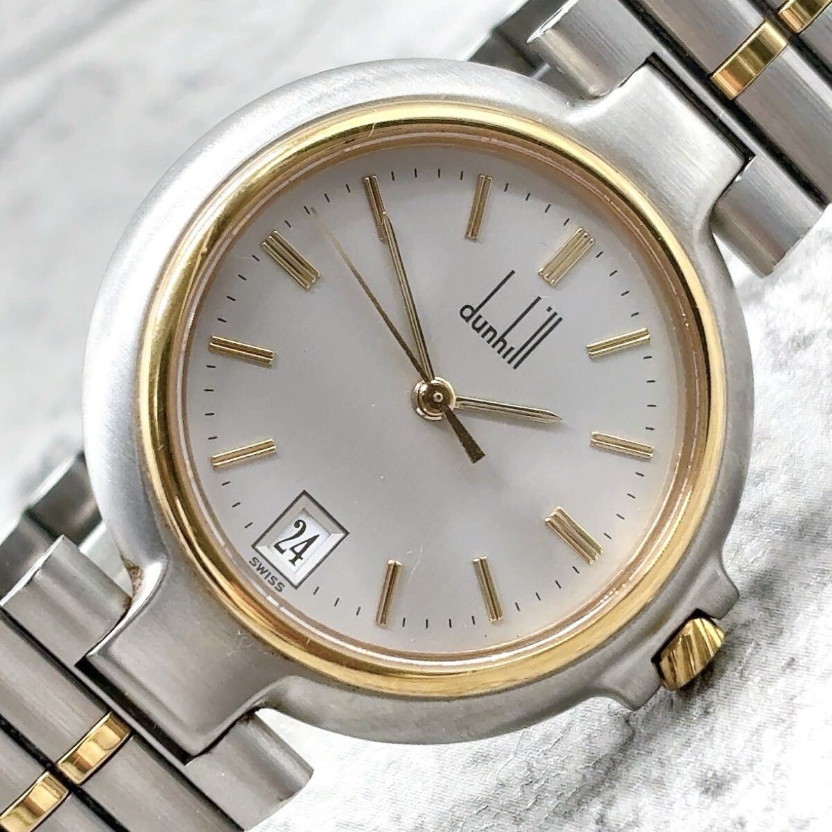 【稼働 美品】dunhill ダンヒル ミレニアム 腕時計 純正ブレス ラウンド 3針 30M スイス製 シルバー 文字盤ホワイト QZ メンズ 新品電池