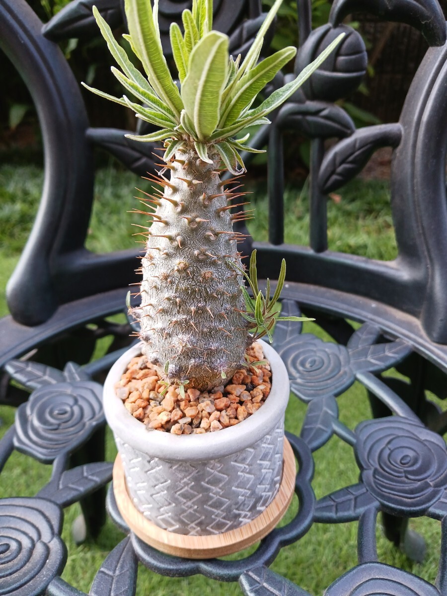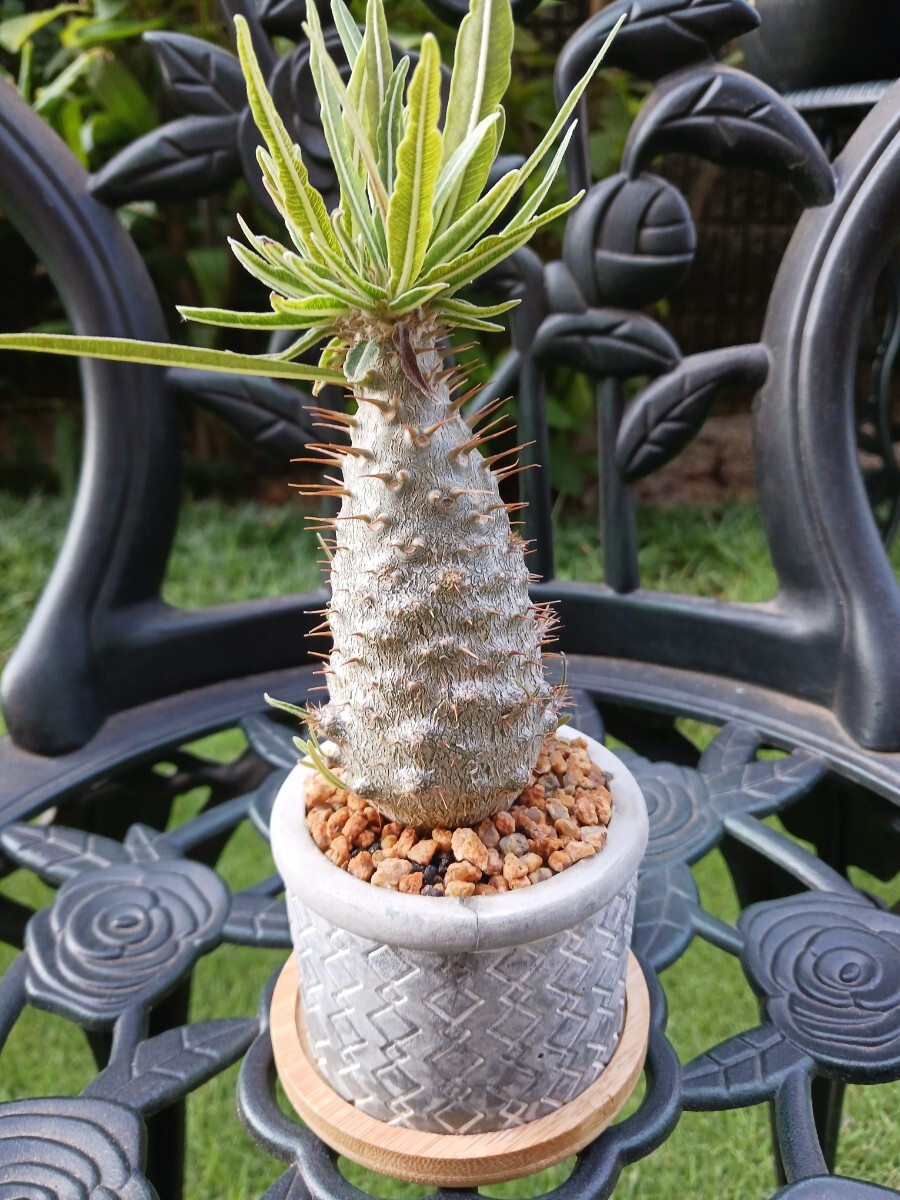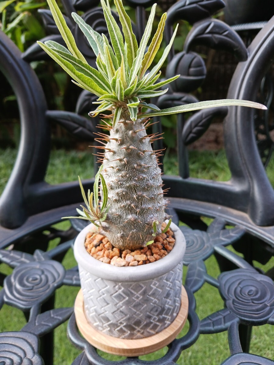 鉢のサイズ、高さ58ミリ、直径75ミリのセメント鉢に植えて管理しています。