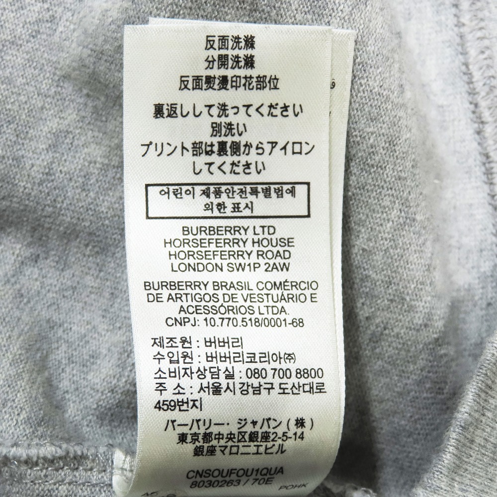 商品名:BURBERRY バーバリー Tシャツ リカルドティッシ FERNFORD ロゴプリント レイヤードスリーブ 長袖 トップス グレー XS