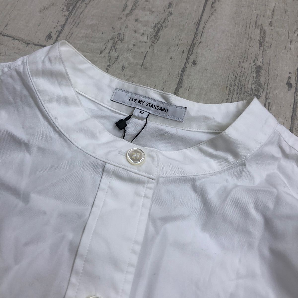 未使用 23区 MY STANDARD バンドカラーシャツ サイズ40 長袖 コットン 白 レディース YF[496