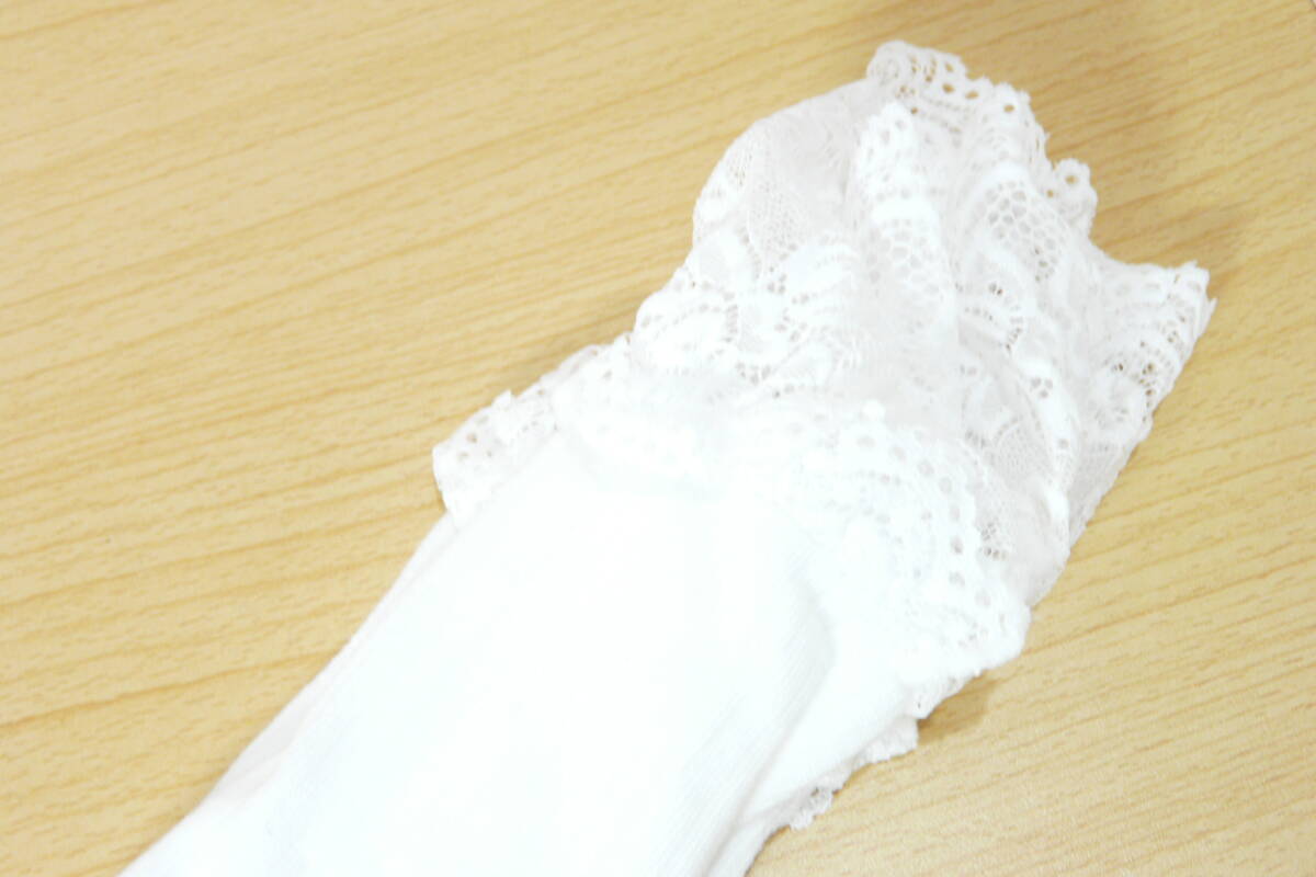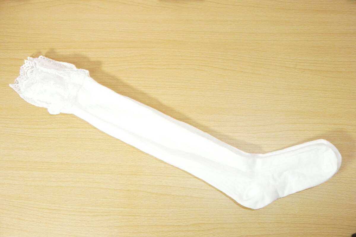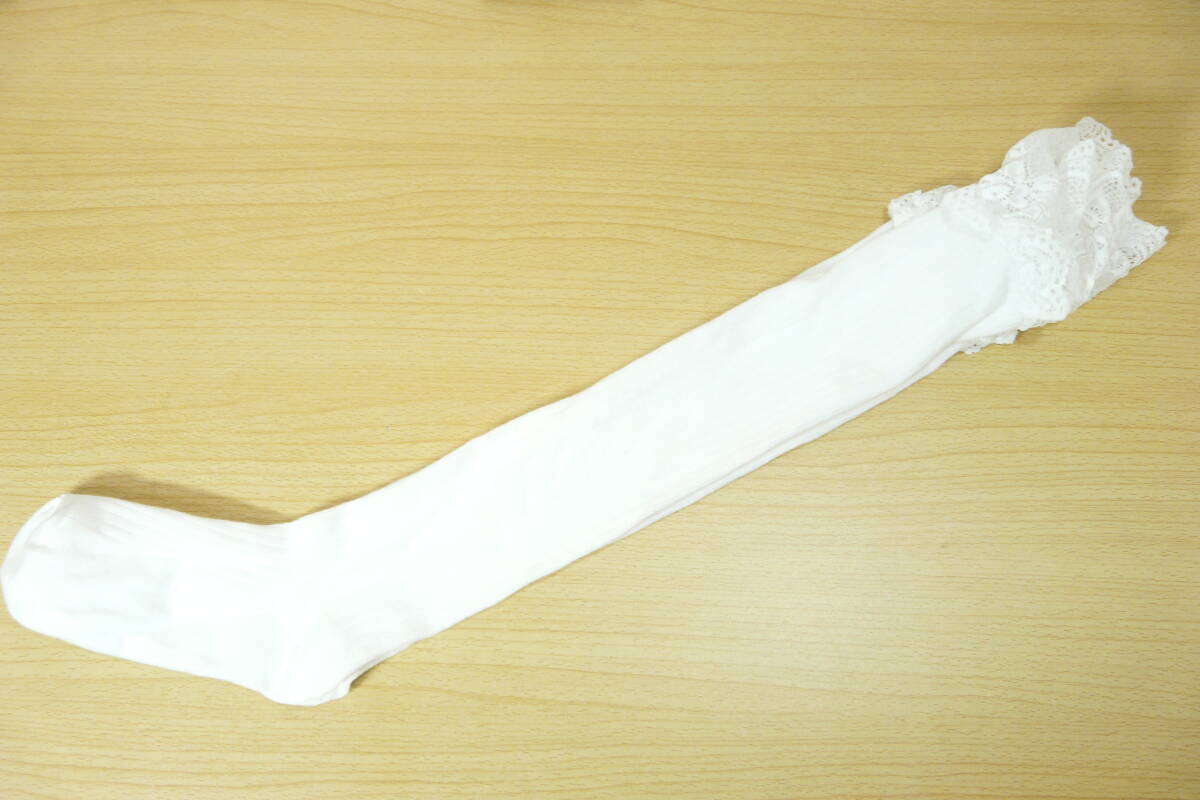 【カラー/デザイン】 ・ホワイト ・5×1リブ ・レーストップ ・オーバーニー丈 ※写真にてご確認ください。