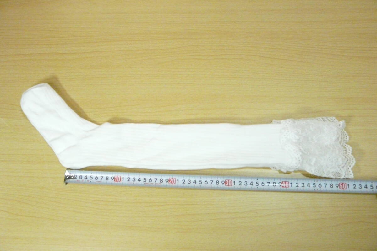【レッグウェア★未使用品】レーストップ◆5×1リブ◆太リブ 白 ニーハイ ハイソックス◆コスプレ◆メイド◆アイドル◆23-25cm◆52cm丈◆