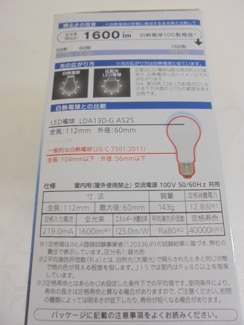 【KCM】JHKZ-133★新品・箱傷み★OHM オーム電機 E-Bright LED電球 E26口金 100形相当 1個入 昼光色 広配光タイプ LDA13D-G AS25