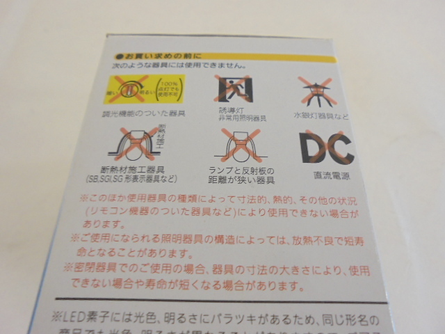 ・調光(明るさが調整できる)器具には使用できません。(100%点灯でも使用不可)