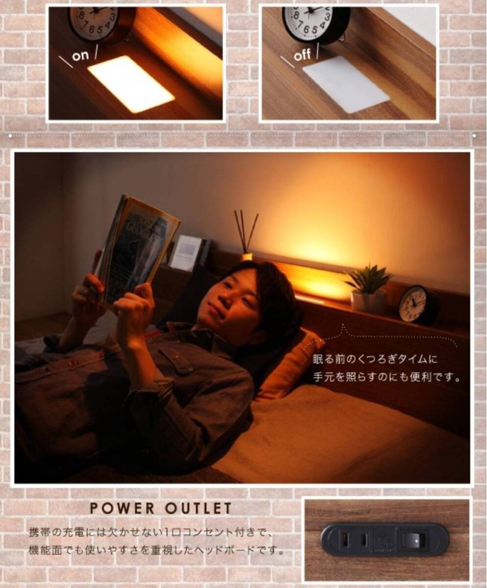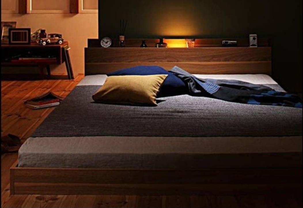 フレームのみ【アウトレット品】セミダブル 棚コンセント付き シンプルモダンフロアベッド ウォルナットブラウン