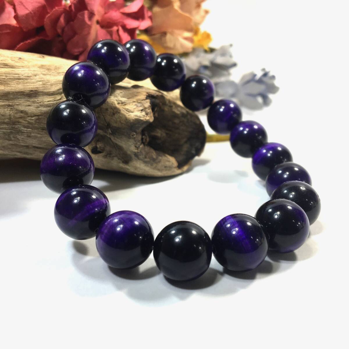 こちらは、パープルタイガーアイの12mm玉を使用したパワーストーンブレスレットです。シンプルなデザインですのでどんなコーディネートとも合わせ易いブレスレットです。程よくインパクトがある12mm玉を使用して内径約17cmです。(サイズ変更の場合は取引ナビにてご連絡をお願いします。) 数に限りがございますので気になる方はお早めにどうぞ。