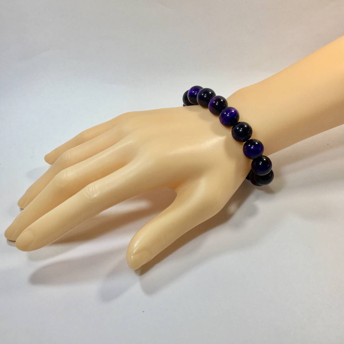 パープルタイガーアイ パワーストーン ブレスレット 12mm シンプル 開運 浄化 数珠ブレス メンズ 男性
