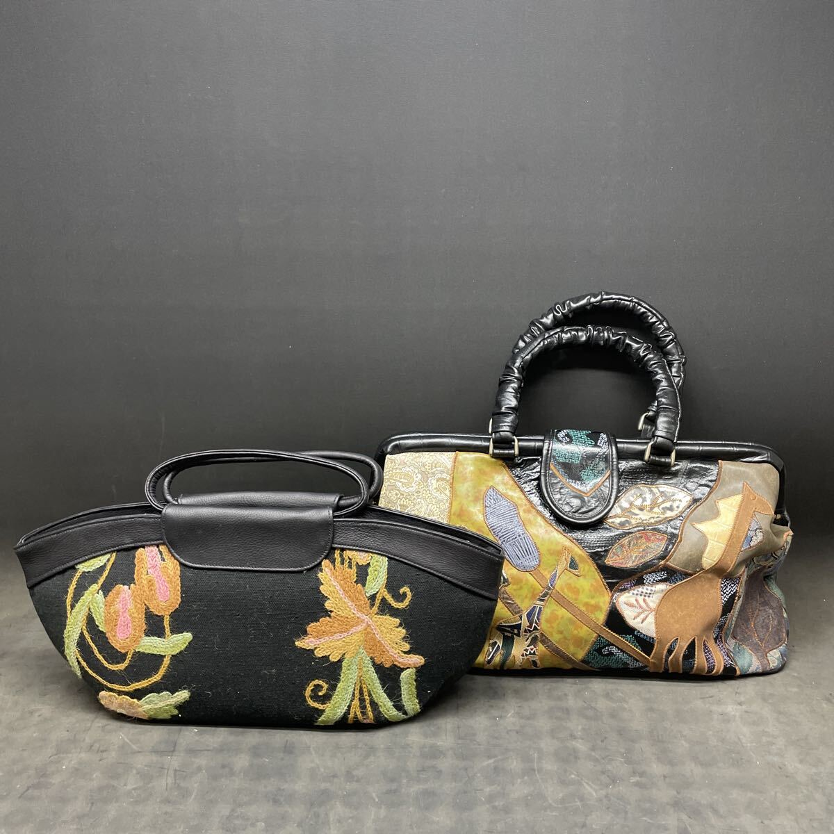 【ヴィンテージバッグ まとめて】 麻 刺繍 植物 パッチワーク キリン 素材不明 ハンドバッグ 保管品 現状品