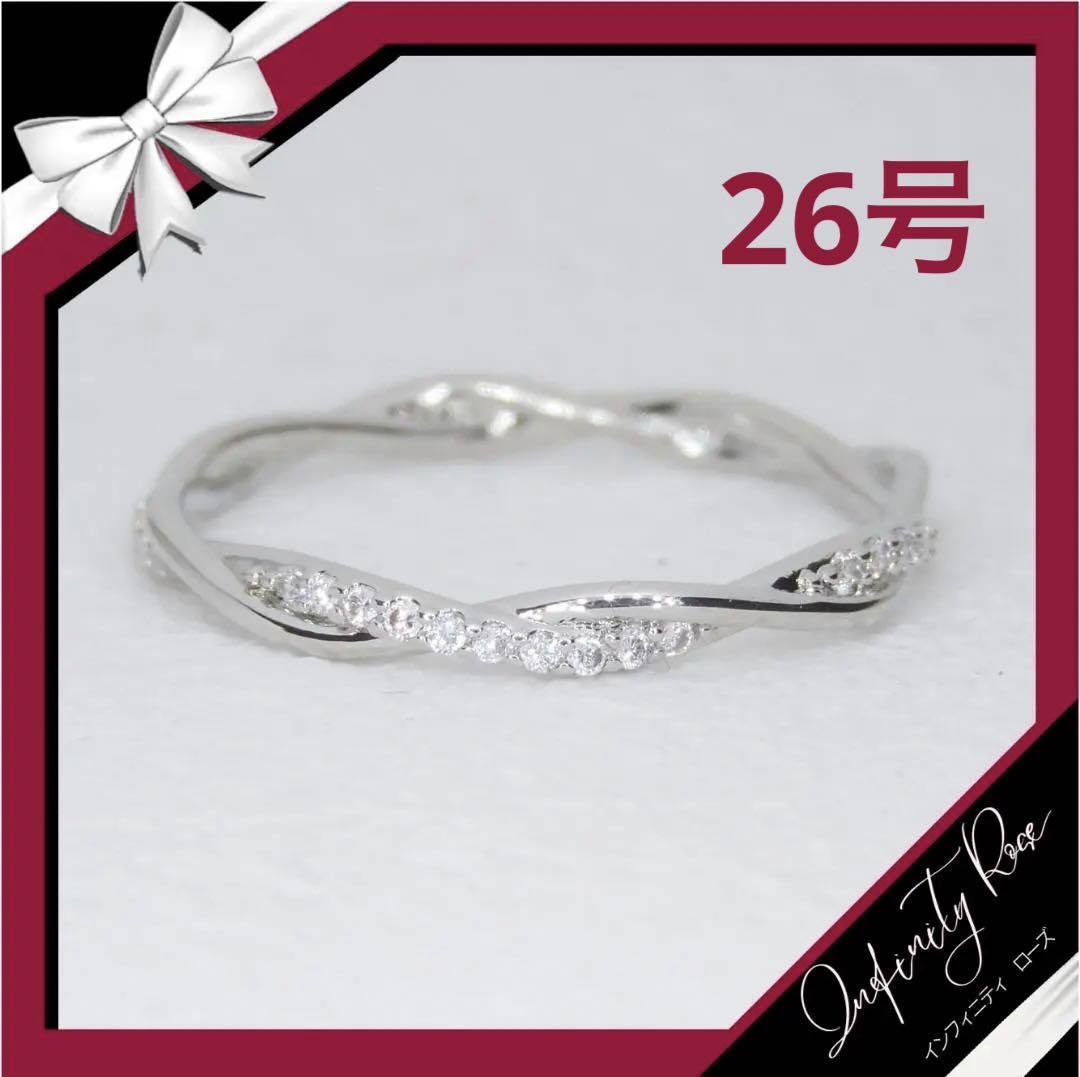 (R005S)26号 シルバーツイスト可愛い繊細な細身ジルコニアリング 指輪