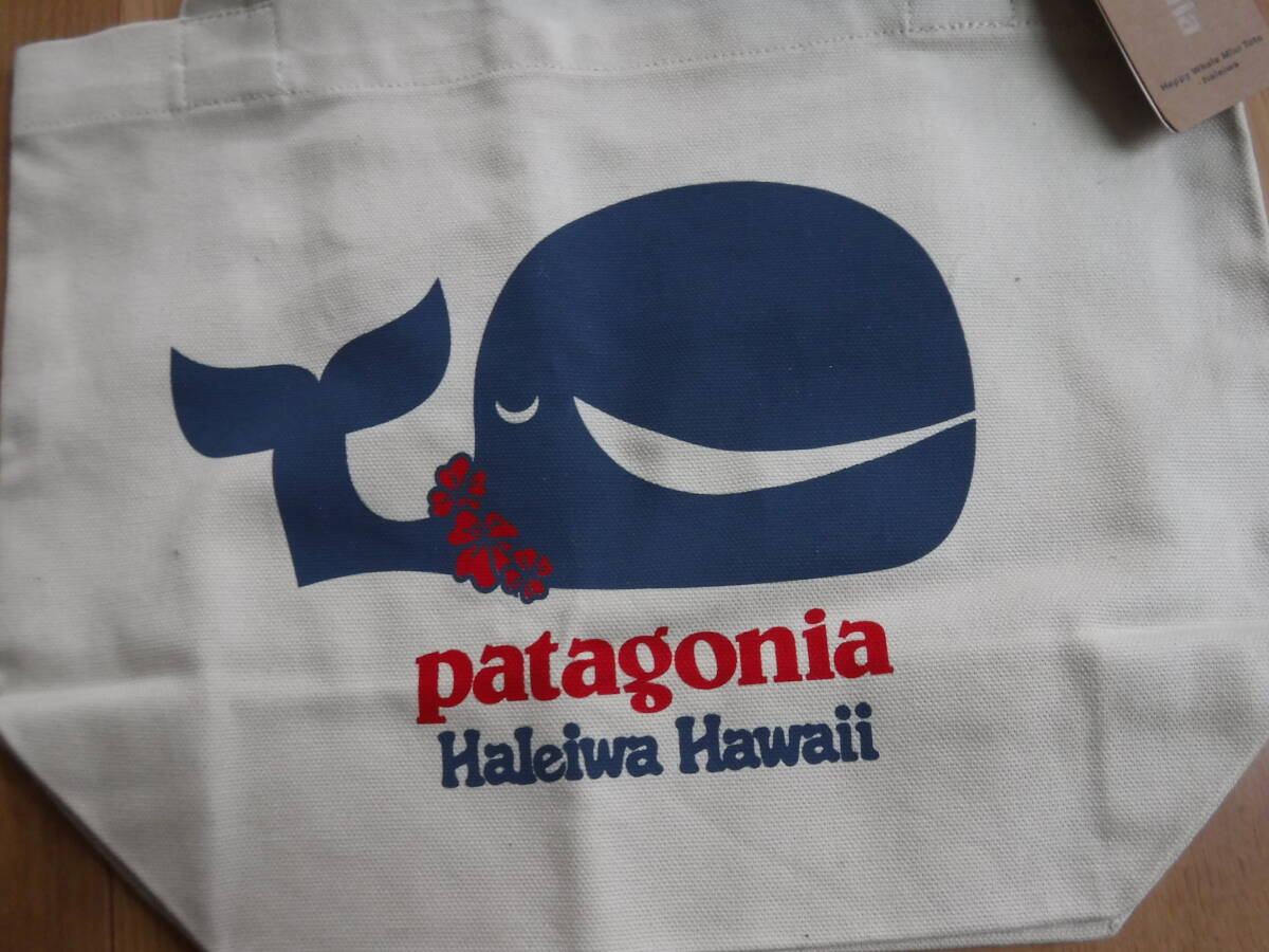 税不要特価 ハワイ購入 新品タグ付!ハワイ限定 パタゴニア ハレイワ ハワイ レイ クジラ 大きめロゴ入 ハワイアン トートバッグ♪