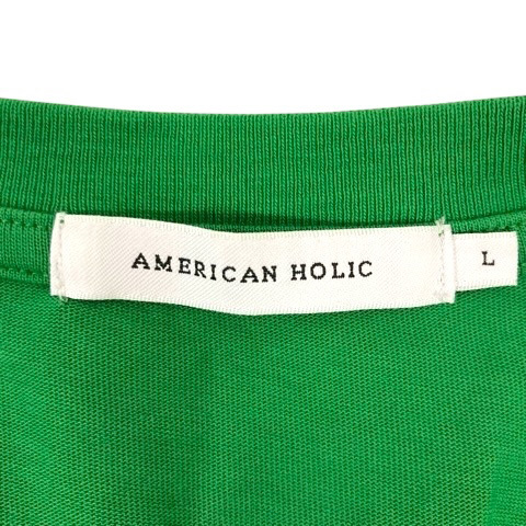アメリカンホリック AMERICAN HORIC Tシャツ カットソー クルーネック フレア コットン 無地 半袖 L 緑 グリーン レディース