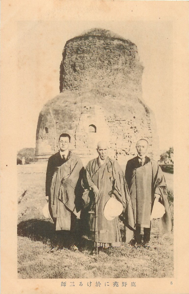 a-9084【絵葉書】◆ 鹿野苑に於ける三師