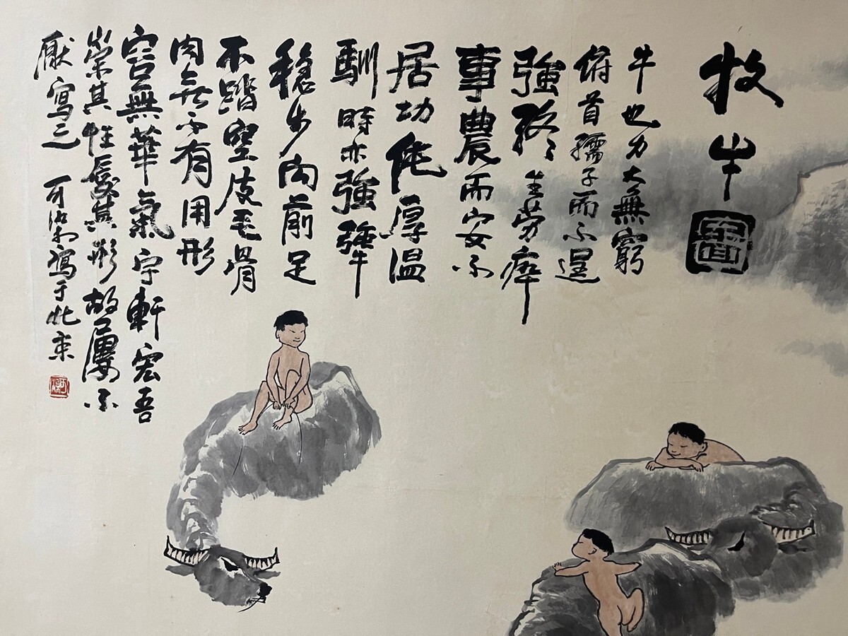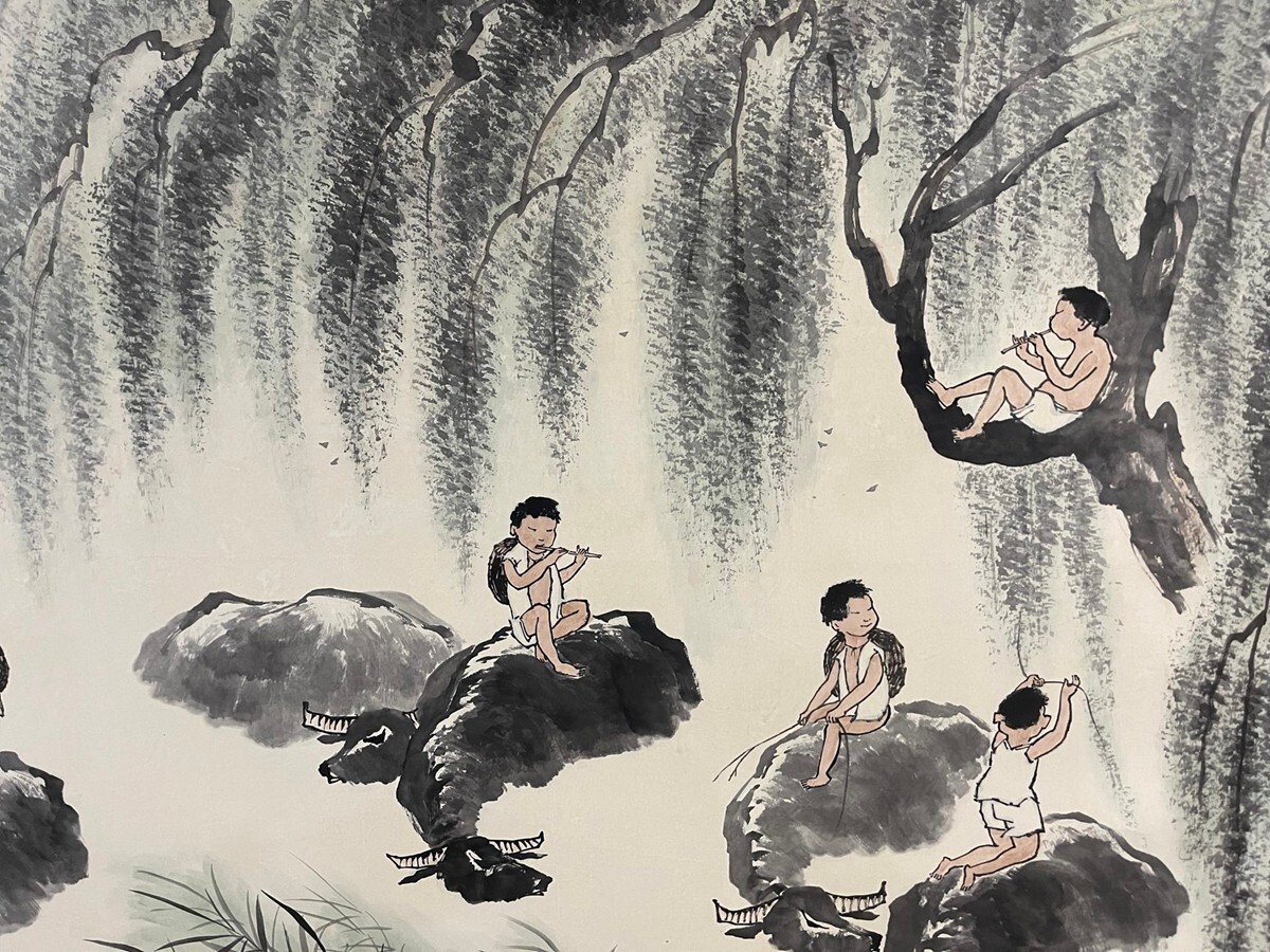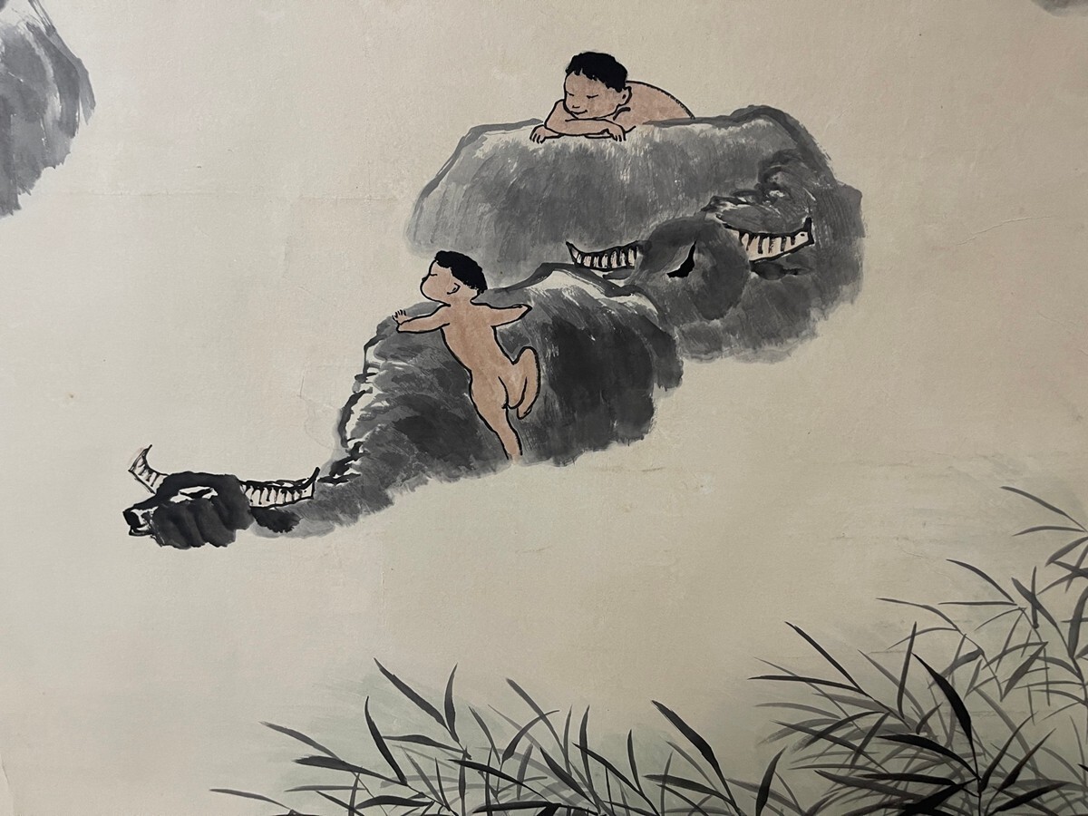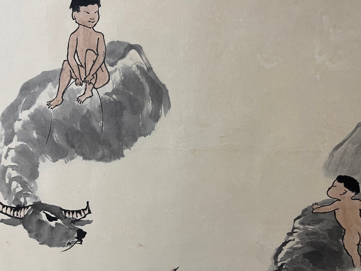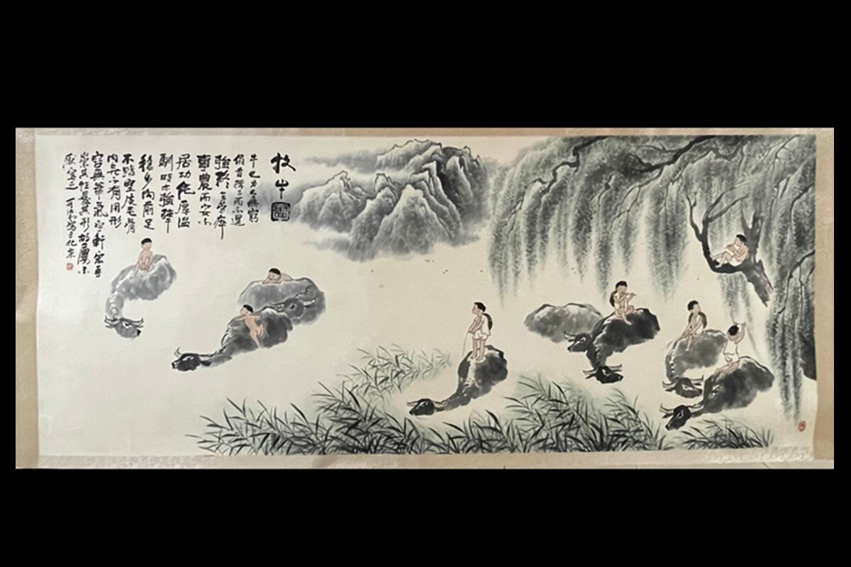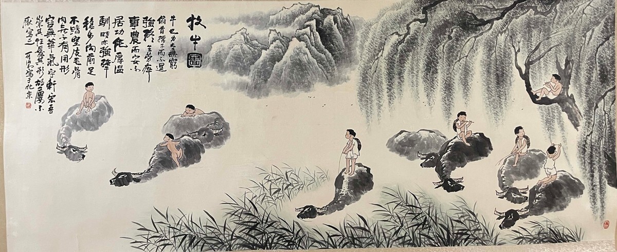 中国書画「李可染 牧牛図鏡片」肉筆紙本 掛け軸 墨寶妙品 書画横軸 巻き物 古美術 旧蔵出