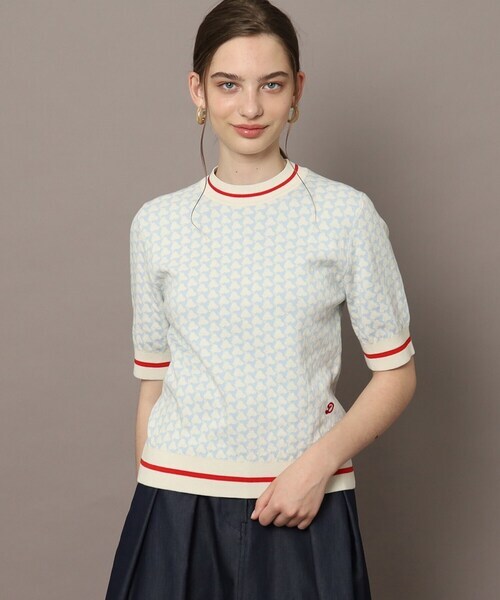 参考商品名:【洗える】トリコロールジャカードハーフスリーブニット