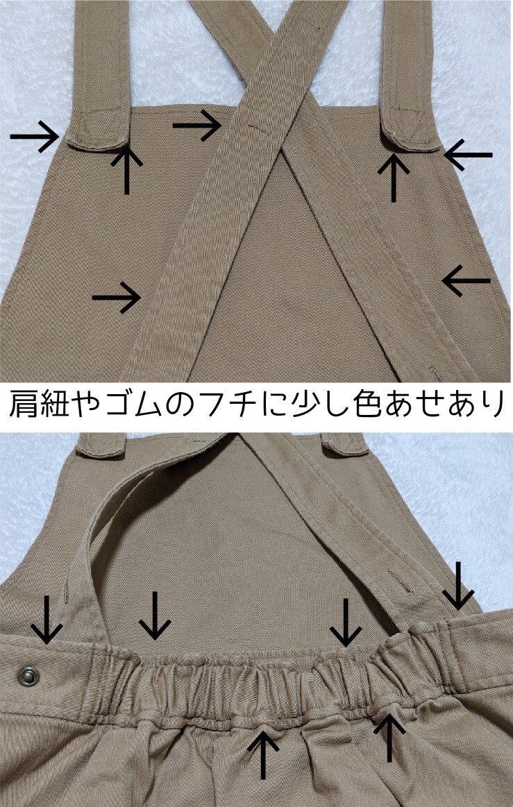 ※多少の生地の毛羽立ち、写真にあるように肩紐や裾周り、ウエストなどのフチに少し色あせがございますが、公式説明文にもあるように、元々の製品洗い加工による風合いもあるかと思います。