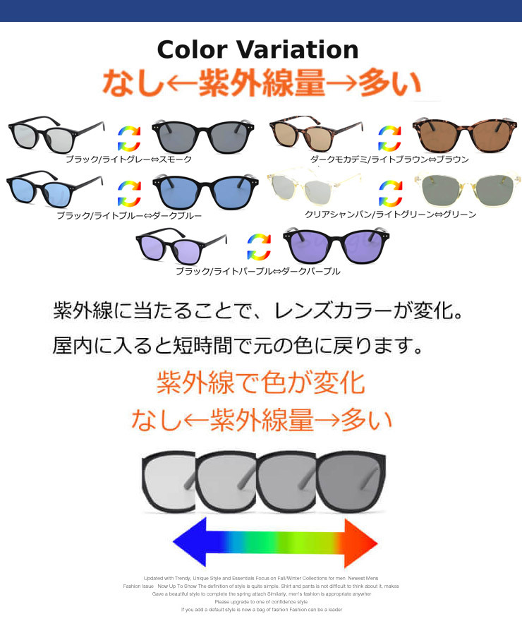 商品説明 | ウェリントンタイプのサングラスに話題の調光偏光レンズが登場。 |