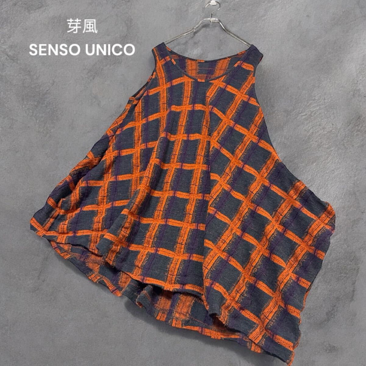 センソユニコ 芽風 メフウ チュニックワンピース 変形チェック アシメ チェック
