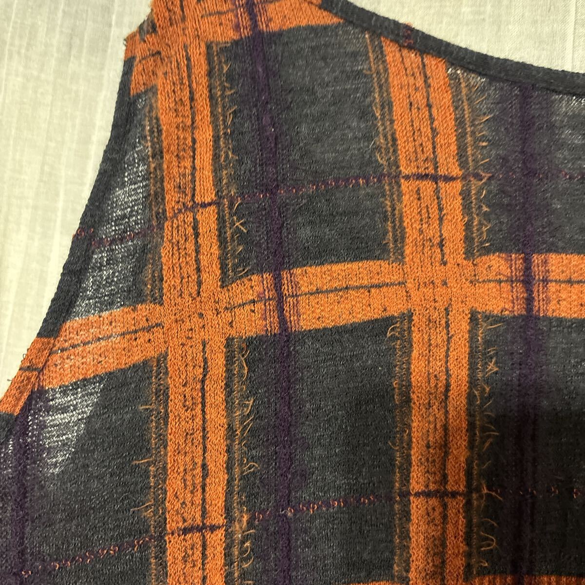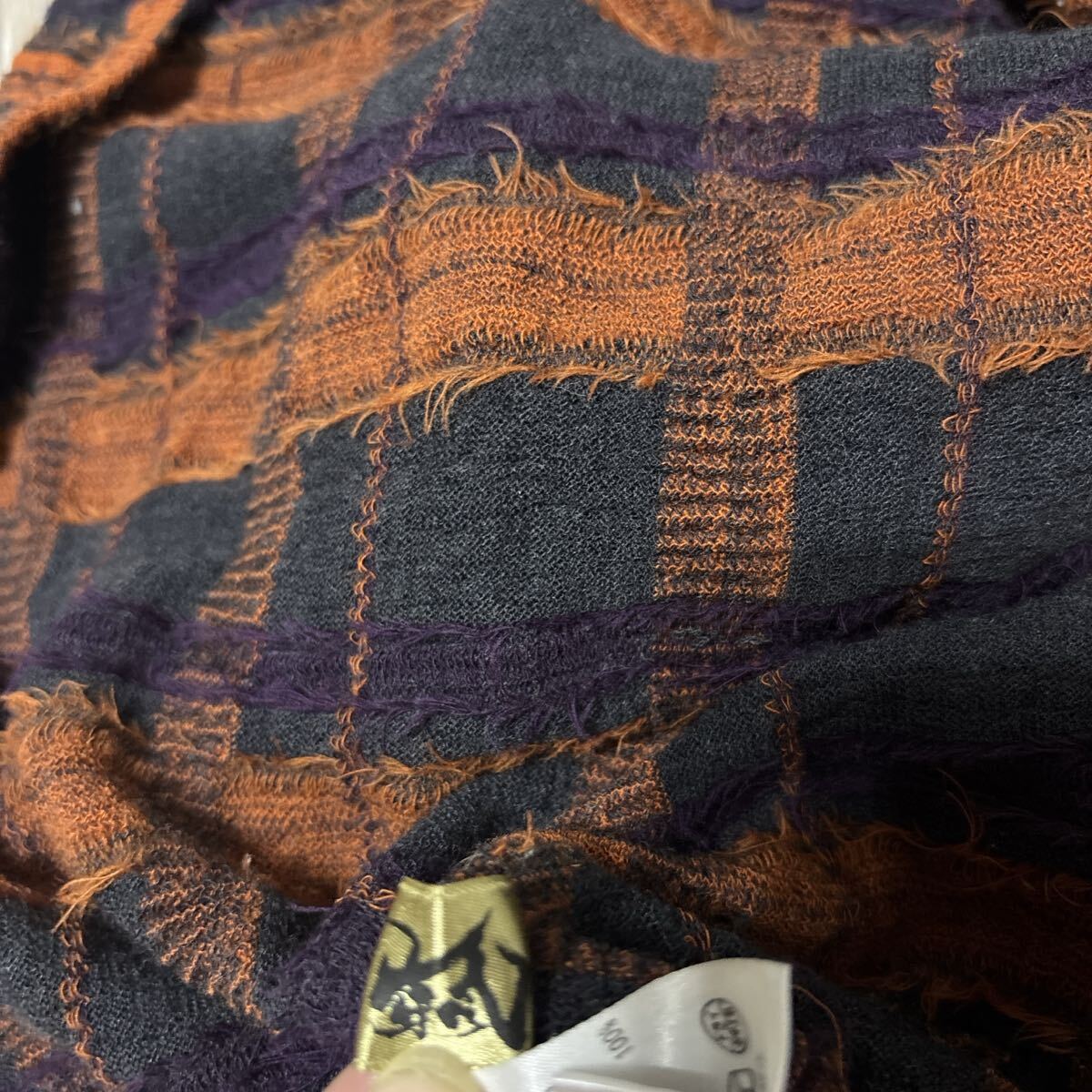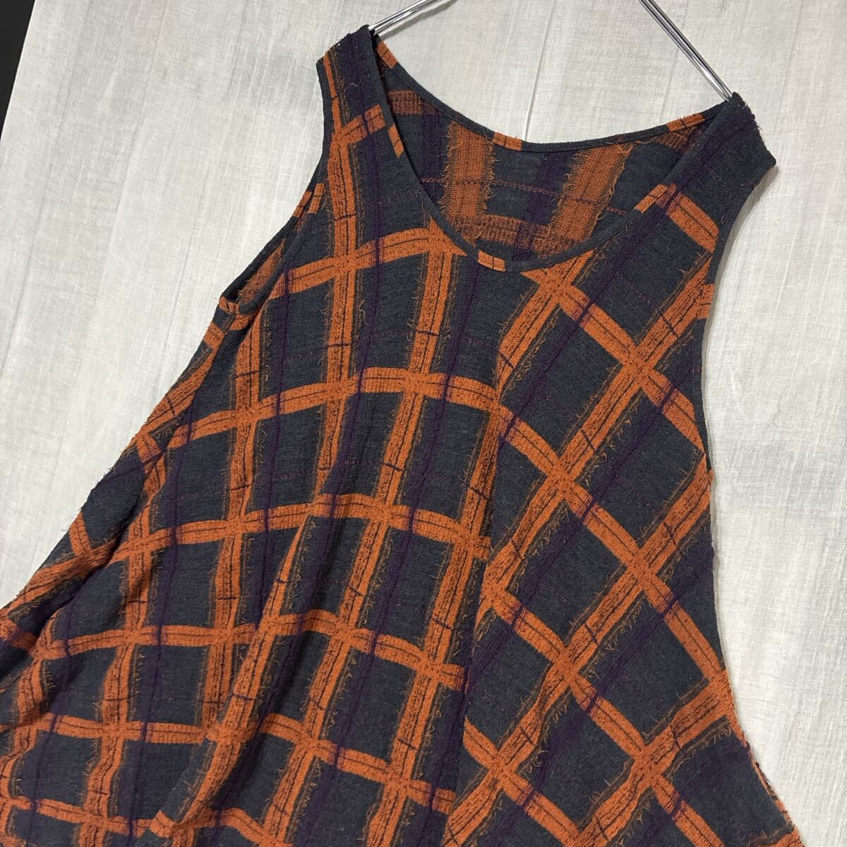 フリンジ感のあるチェック柄でアシンメトリーなシルエットが目を引く、個性的な1着です。