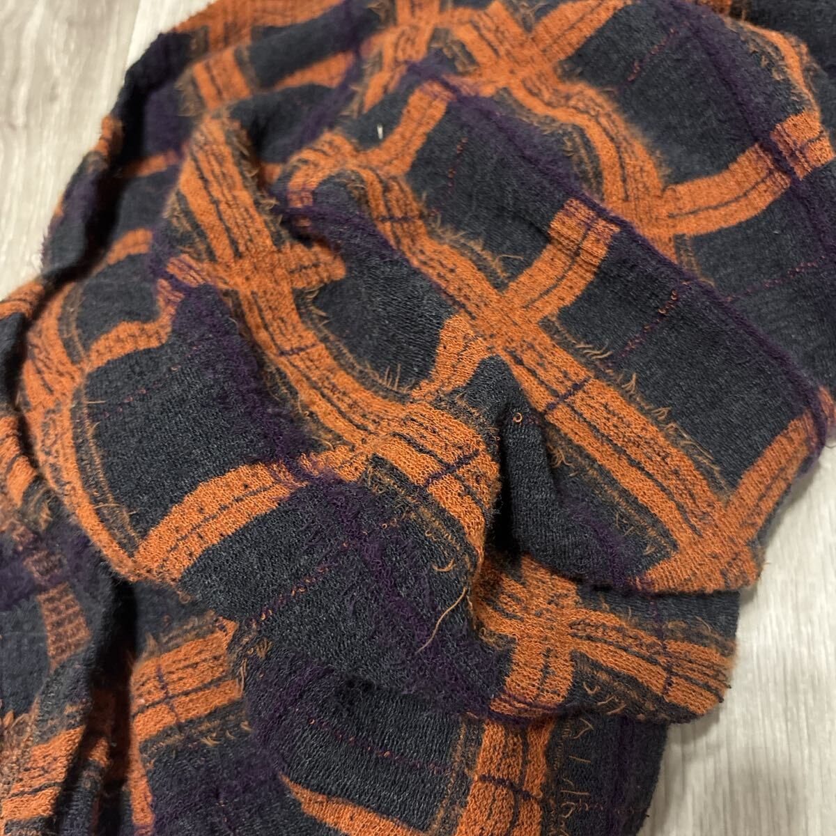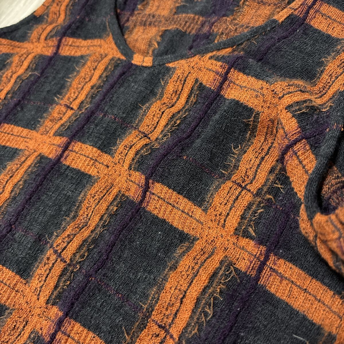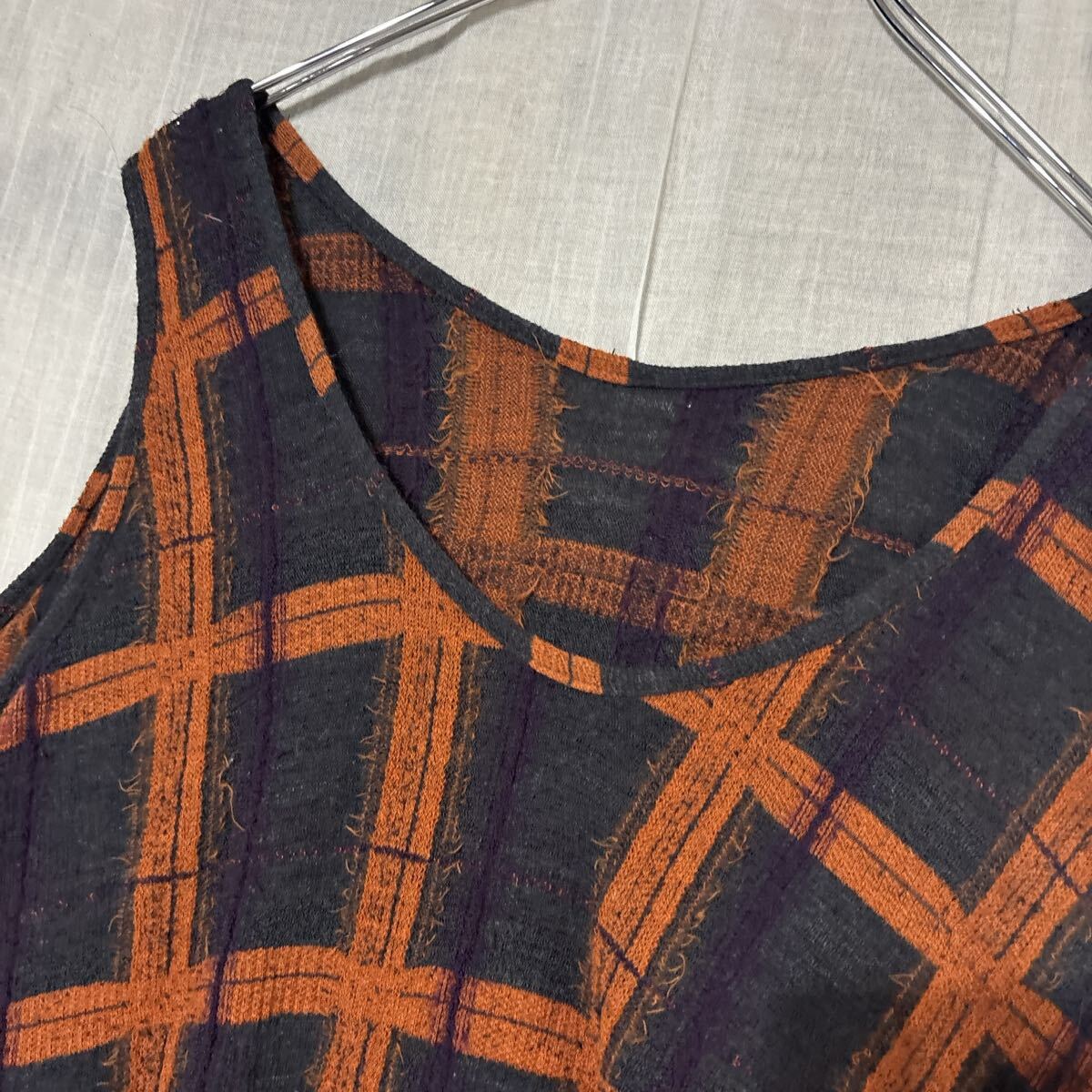 フリンジ感のあるチェック柄でアシンメトリーなシルエットが目を引く、個性的な1着です。