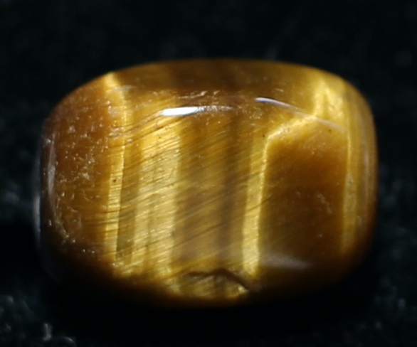 虎目石は同一方向に並んだ針状の内包物が虹彩効果を生みこの光の帯が虎の目のように見えることから名付けれました。