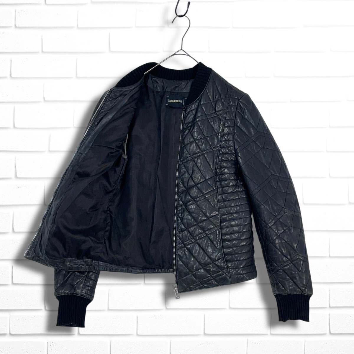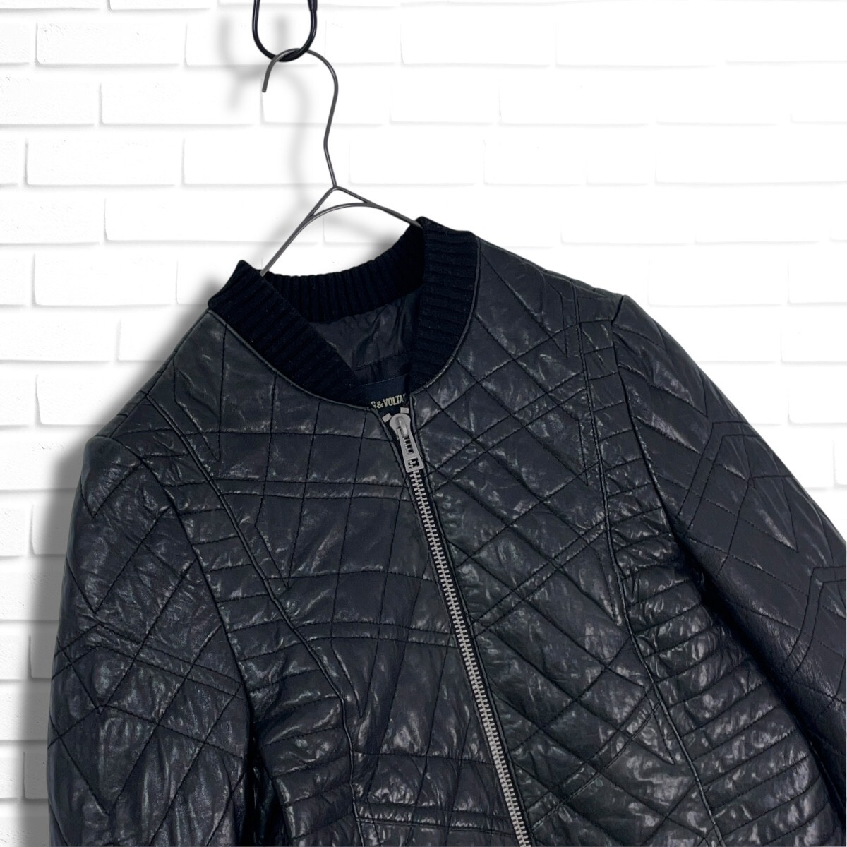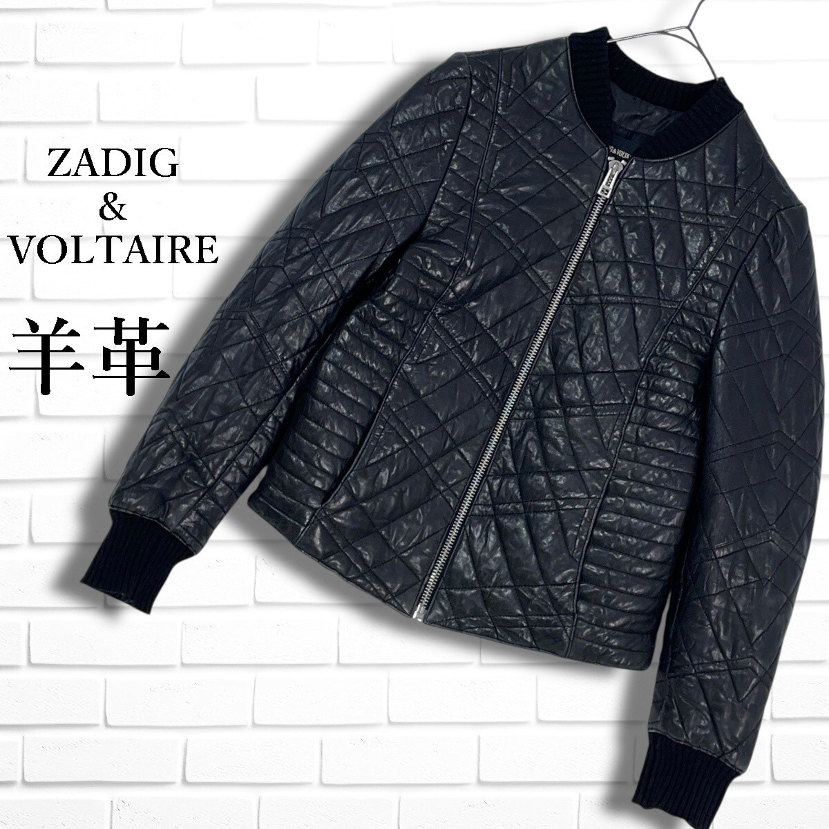 ZADIG&VOLTAIRE ザディグエヴォルテール 羊皮 ラム レザー 本革 中綿 キルティング ジャケット ブルゾン 黒 ブラック レディース ◆送料無料◆ 4965H◇