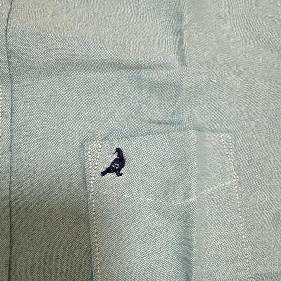 水色の半袖シャツ、ポケット付きで刺繍デザインが特徴的。