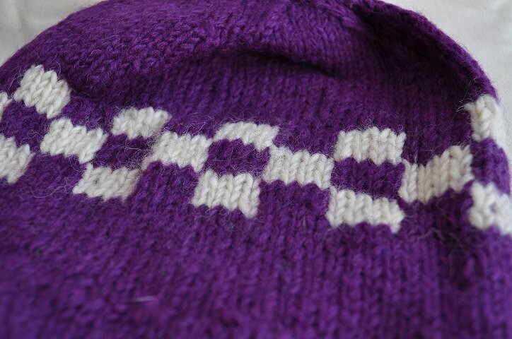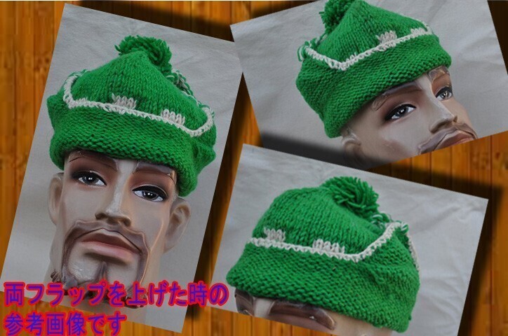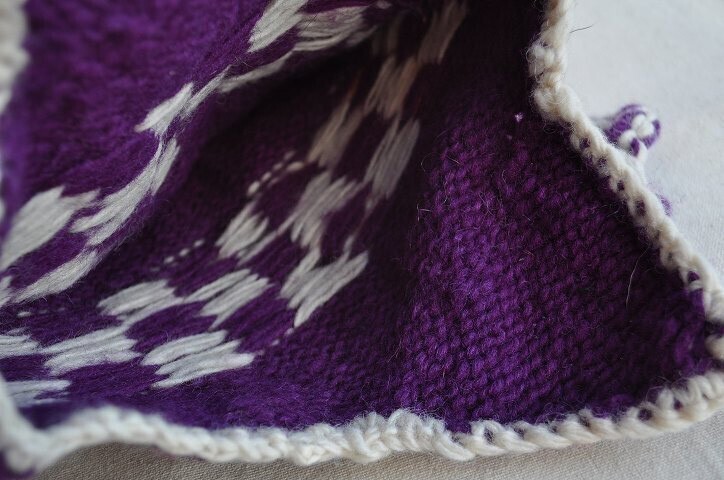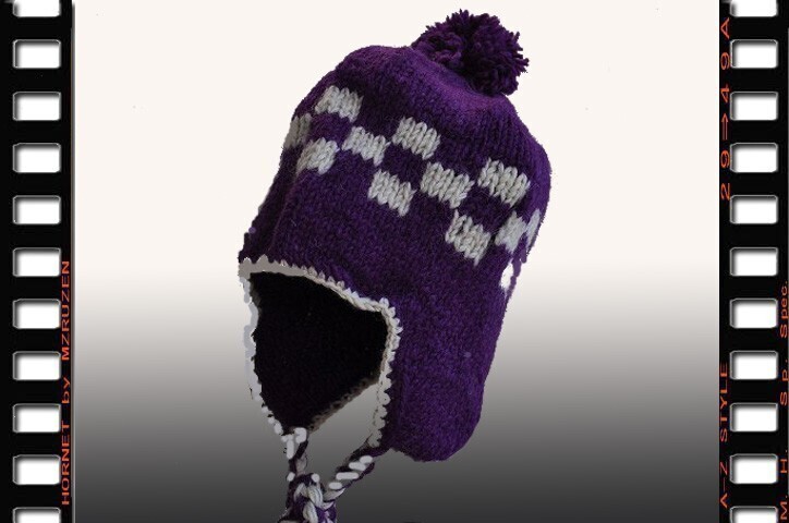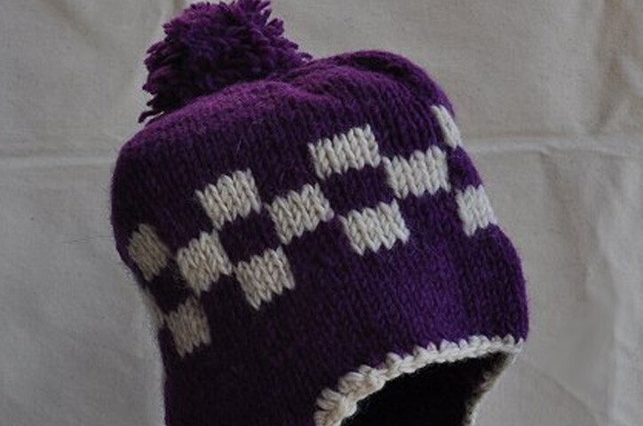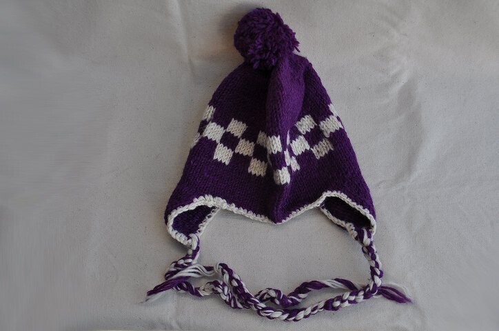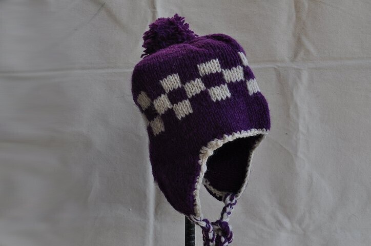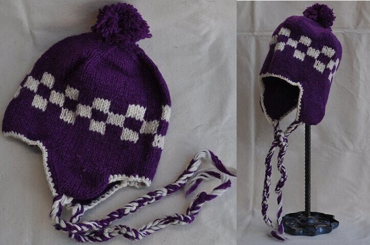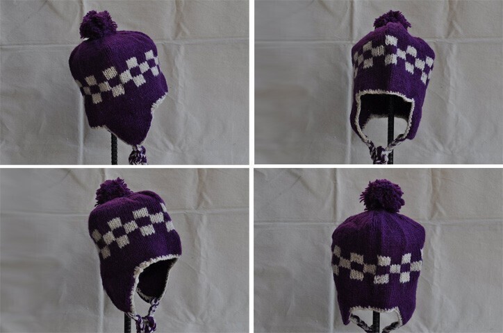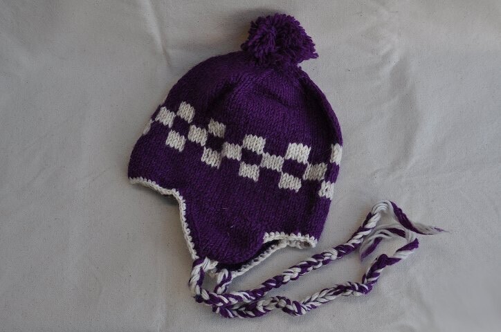 イヤーフラップ付きウールニットキャップ FC-05 ボディカラーパープル マルチ 新品ネパール製 防寒クロッシュヒッピ―耳カバー付き