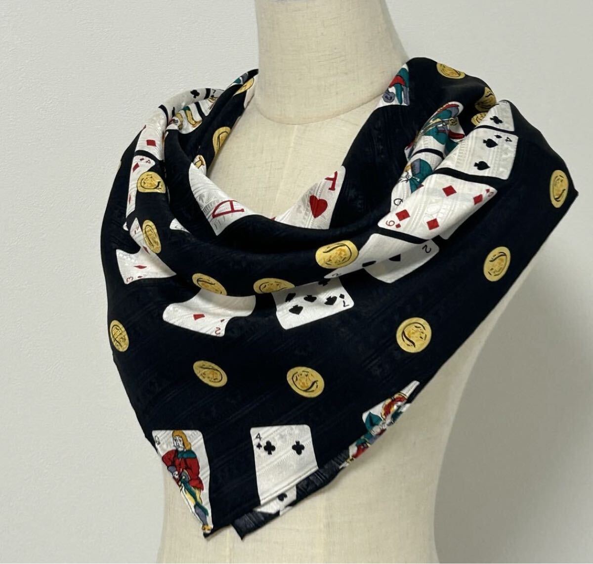 モノクロのトランプ柄がとってもおしゃれな珍しいデザインのスカーフです