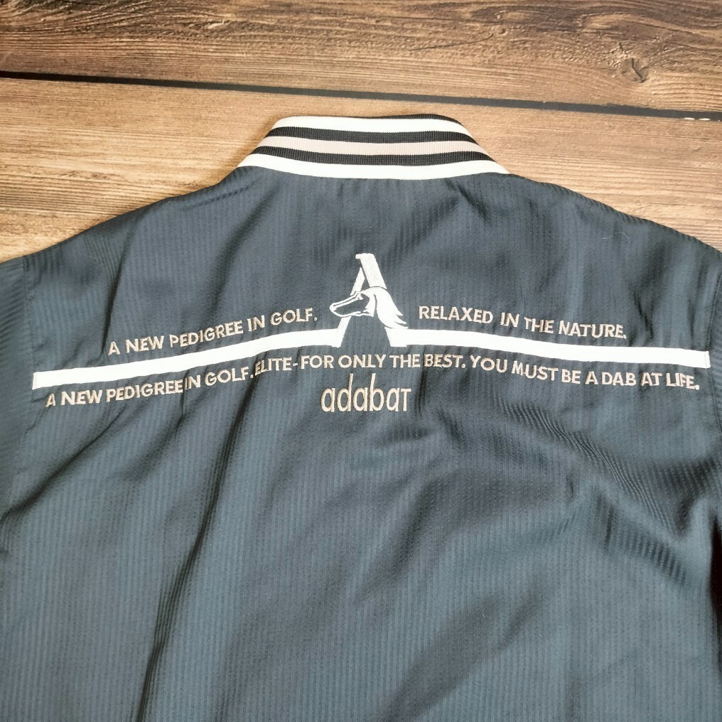 日本製 adabat アダバット メンズ ゴルフウェア 半袖 シャツ ストライプ襟 ポケット付 ブラック Mサイズ 上質ポリエステル 吸汗速乾 夏用