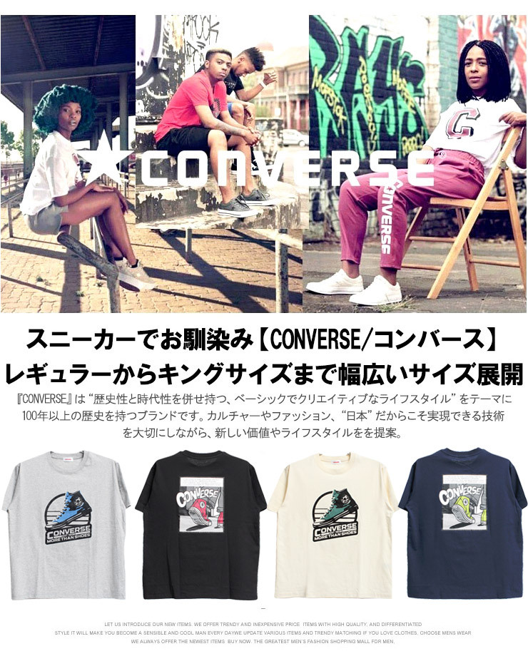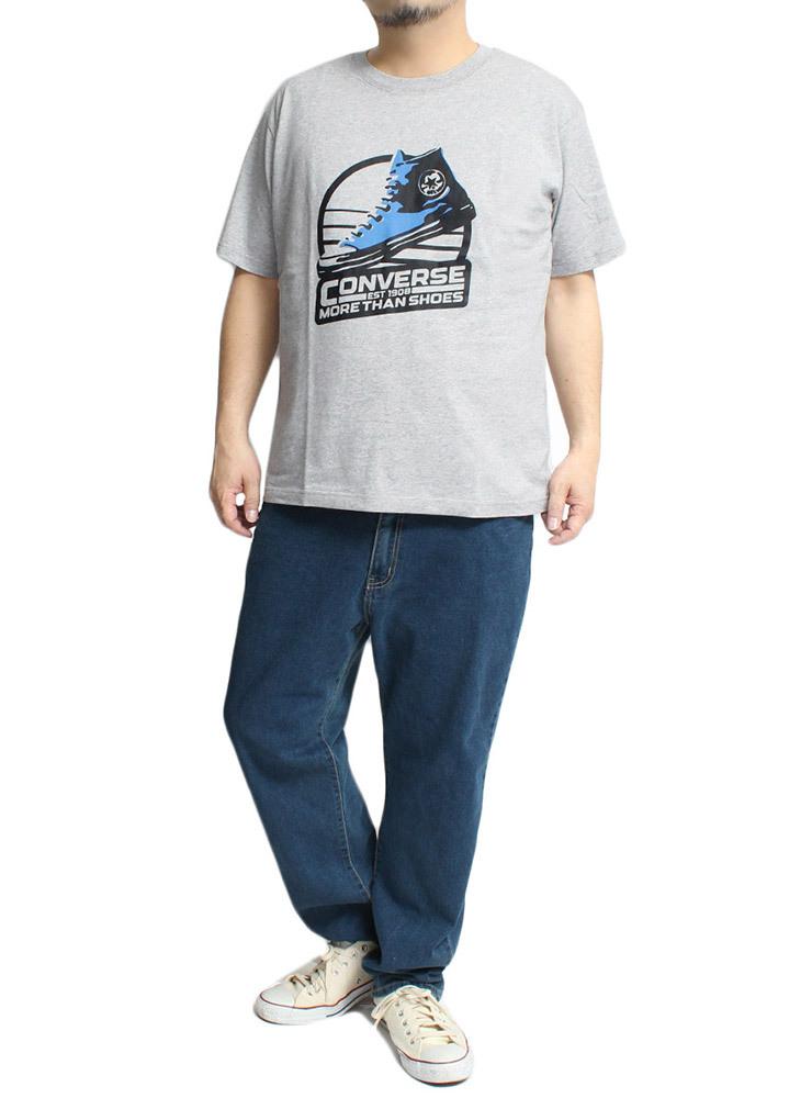 | 商品名 | 【新品】 5L 杢グレー コンバース CONVERSE 半袖 Tシャツ メンズ 大きいサイズ アメコミ風 シューズ プリント クルーネック カットソー |