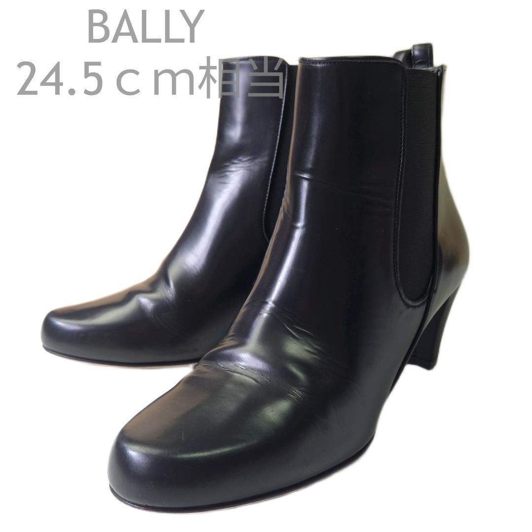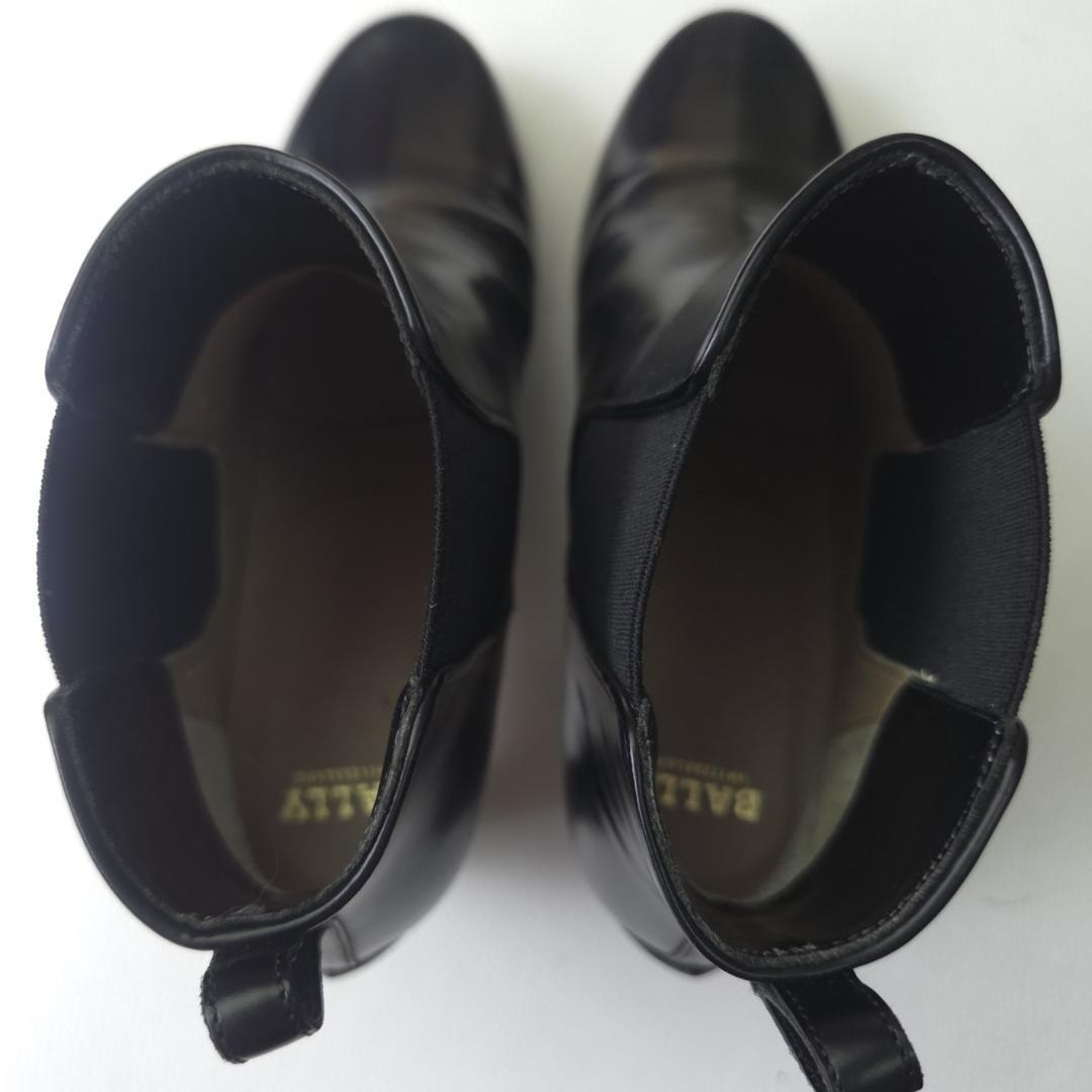 バリー BALLY サイドゴア レザーショートブーツ 冬靴 ブラック 黒 艶 37 1/2 24.5cm位 冬 レディース