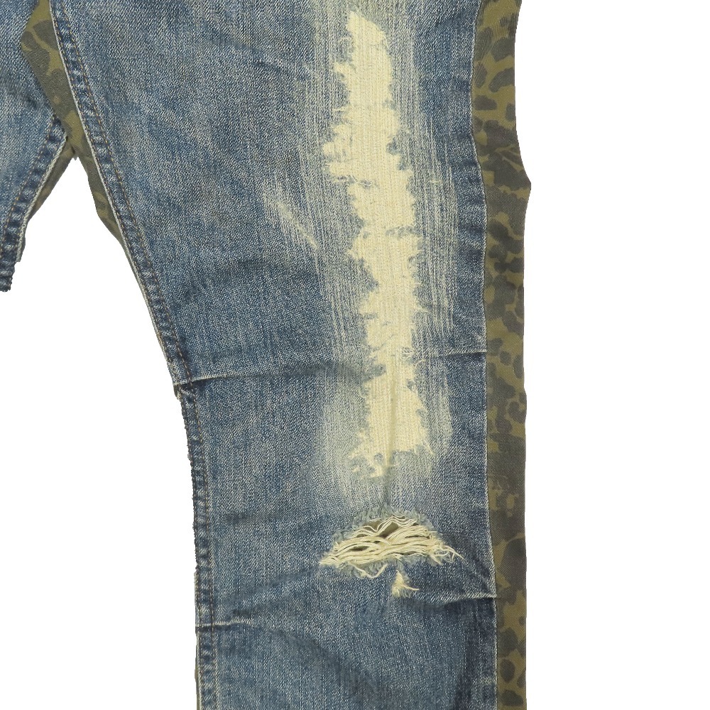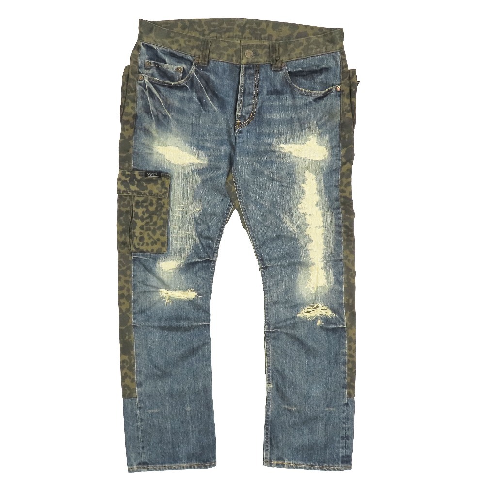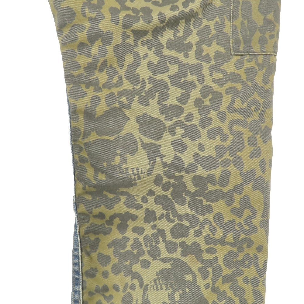 商品名:HYSTERIC GLAMOUR ダメージ加工 コンビネーションデニム ジーンズ レオパード ボタンフライ 5AP-0763 ボトムス インディゴ 32
