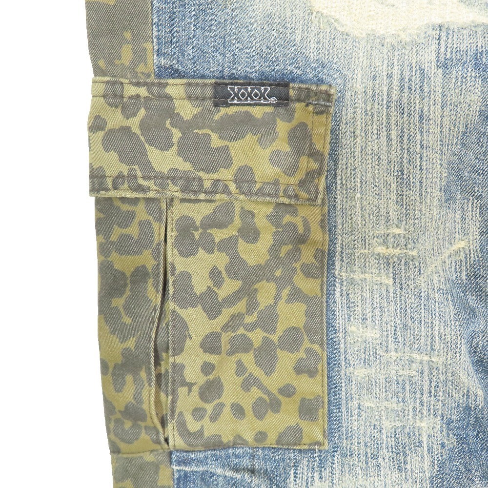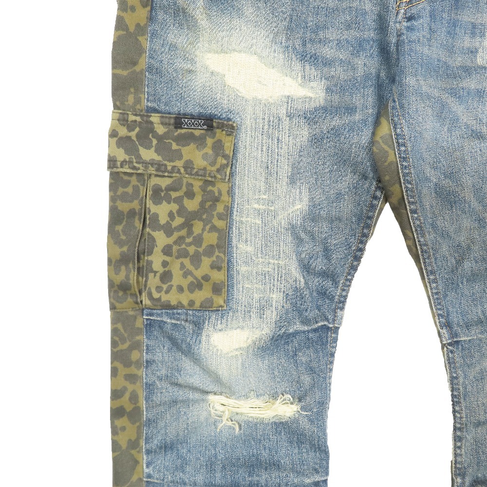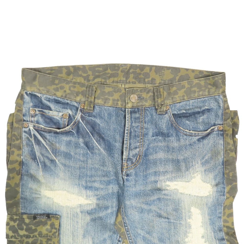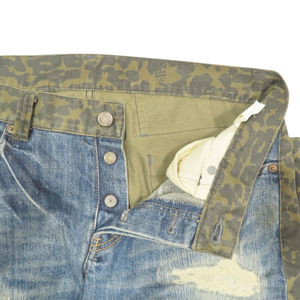 商品名:HYSTERIC GLAMOUR ダメージ加工 コンビネーションデニム ジーンズ レオパード ボタンフライ 5AP-0763 ボトムス インディゴ 32
