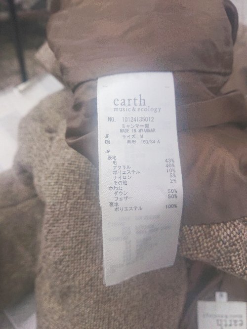 ◇ ⊇ アース ミュージック&エコロジー ウール混 長袖 ダウンジャケット サイズM ブラウン系 レディース E